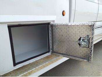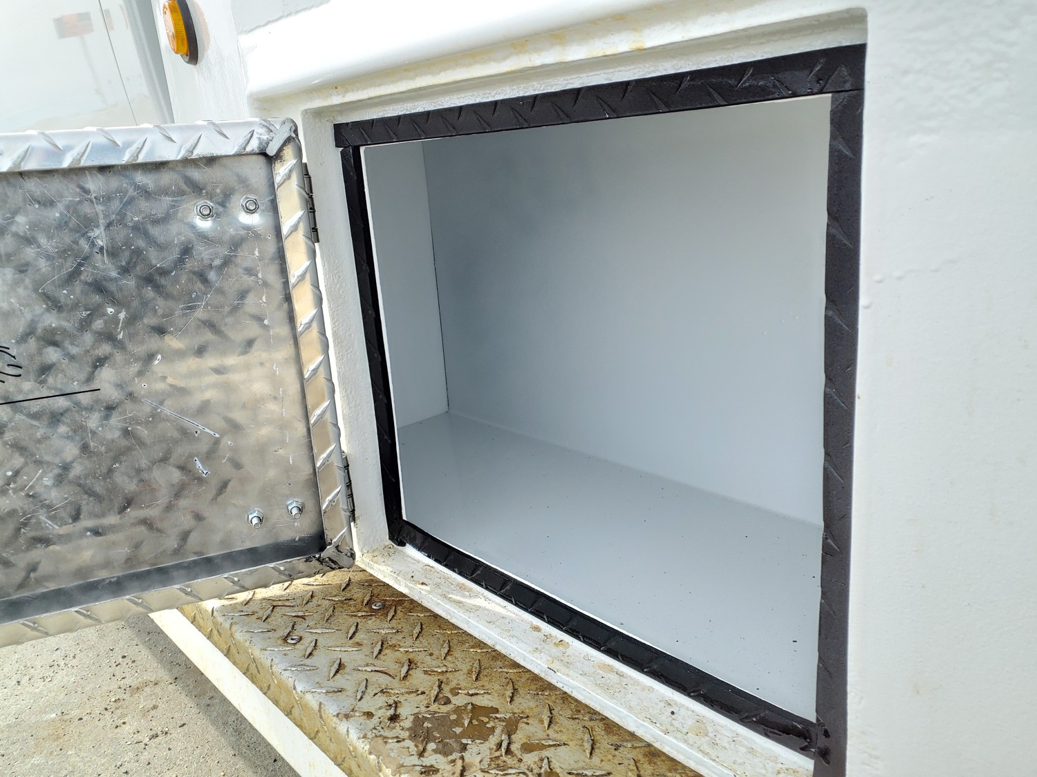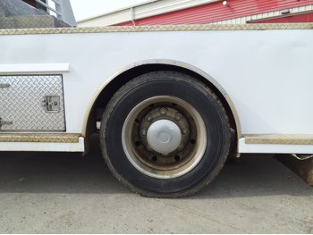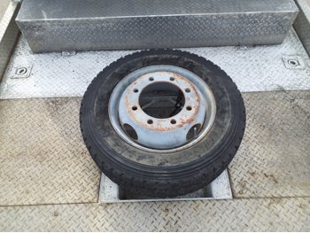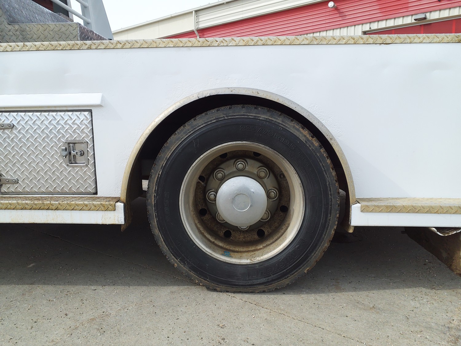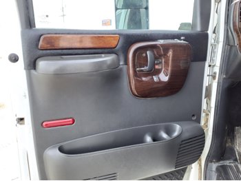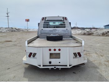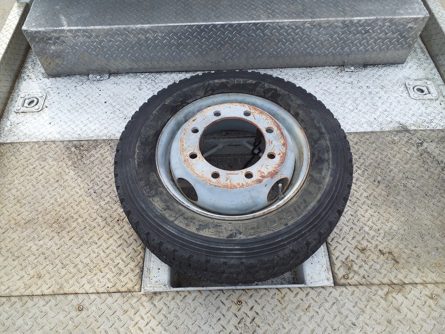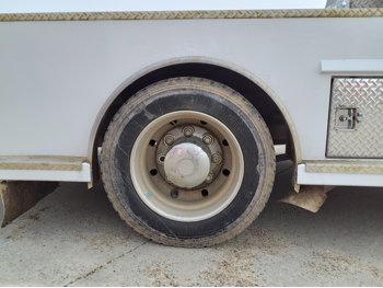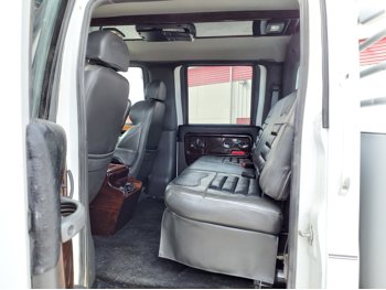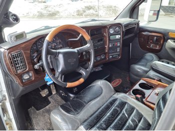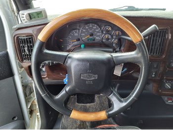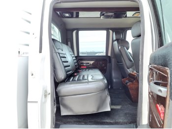 Duramax 6.6-Liter, V8 Diesel engine, automatic transmission, leather interior, A/C, P/W, P/L, electric rear folding seat that turns into a bed, DVD player, stereo, cruise control, running boards, rear dual wheels, rear air bags with onboard electric compressor, 5TH wheel ball hitch, 95 gallon rear saddle fuel tank, 225/70R19.5 tires