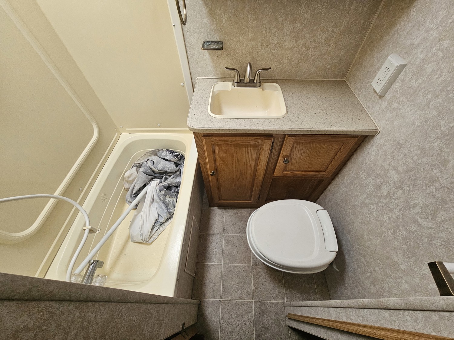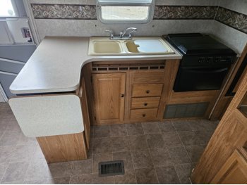 Sleeps 6, stove, fridge, microwave, full bath, A/C, 1 slide, spring suspension, 225/75R16 tires