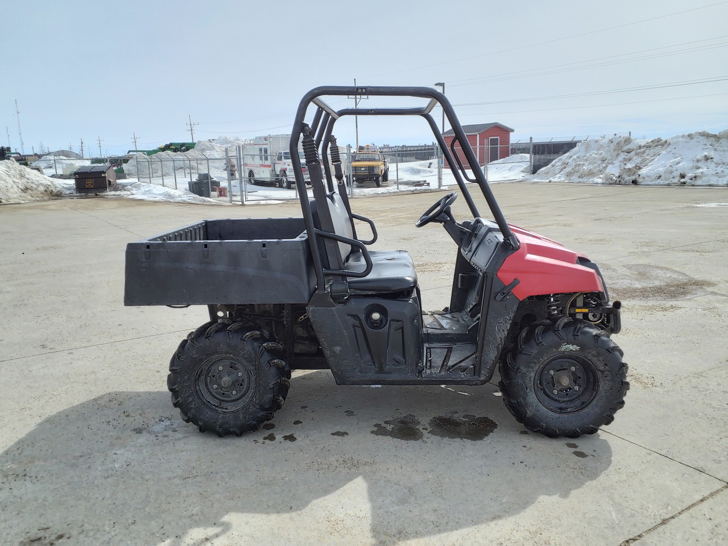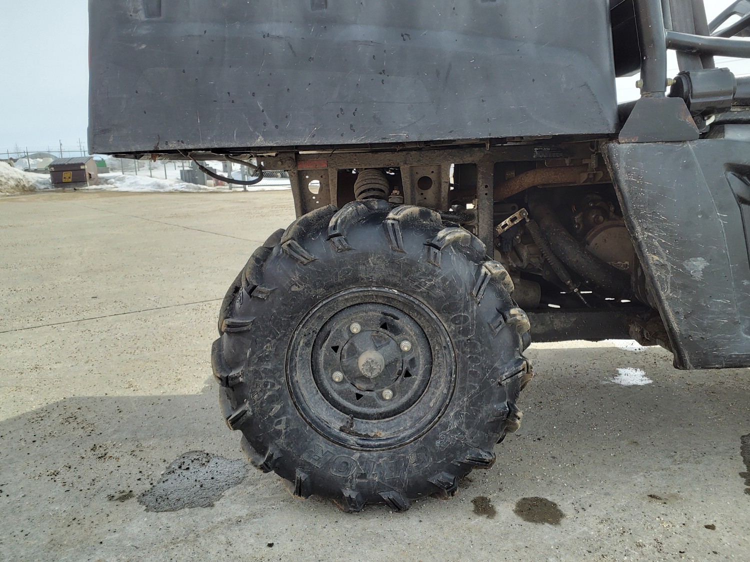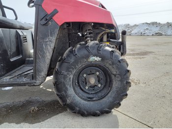 455 cc engine, CVT transmission, Hi/Lo range, reverse, manual dump box, receiver hitch, independent suspension, 27X10R12 front tires, 27X12R12 rear tires