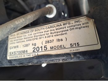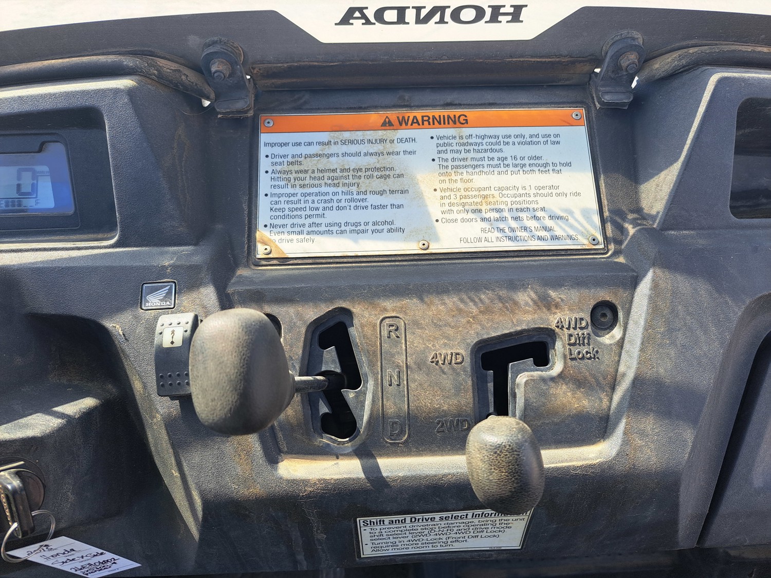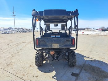 675 cc fuel injected water cooled engine, automatic transmission, reverse, open canopy, 4 passengers, windshield, front winch, receiver hitch, independent suspension, 25X8-12 front tires, 25X10-12 rear tires
