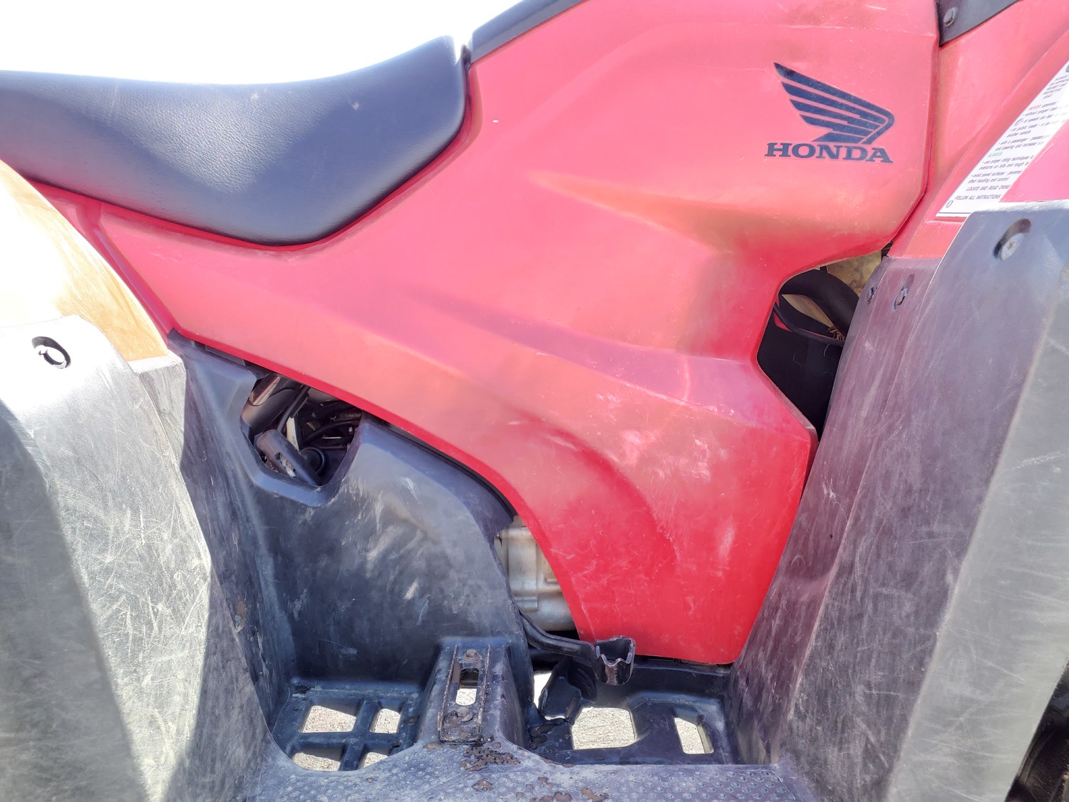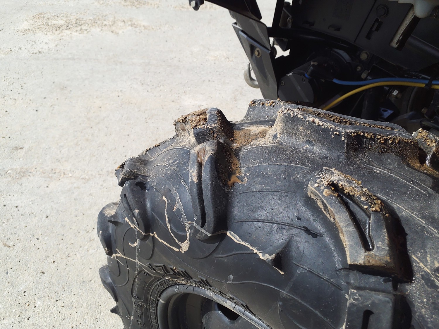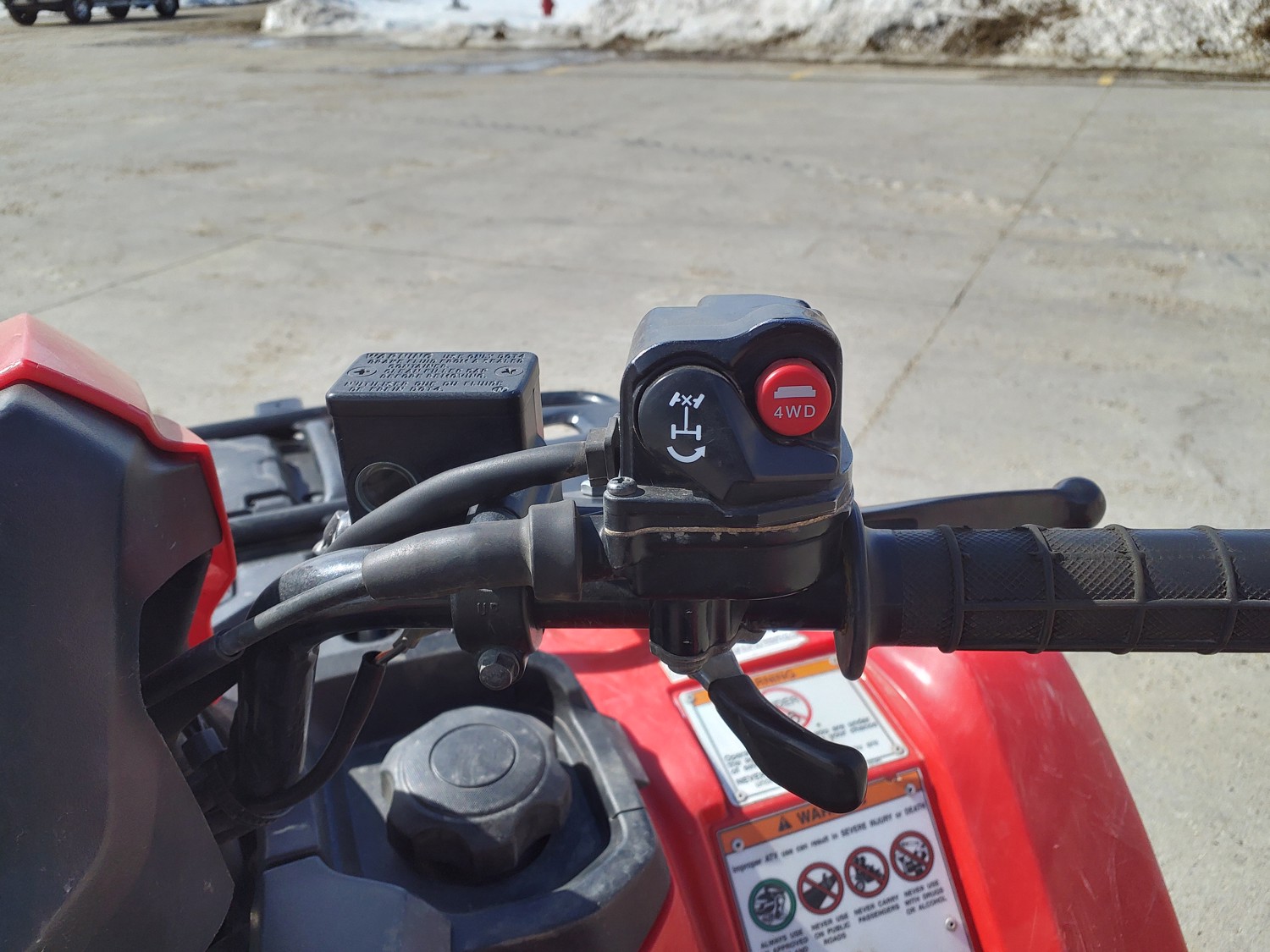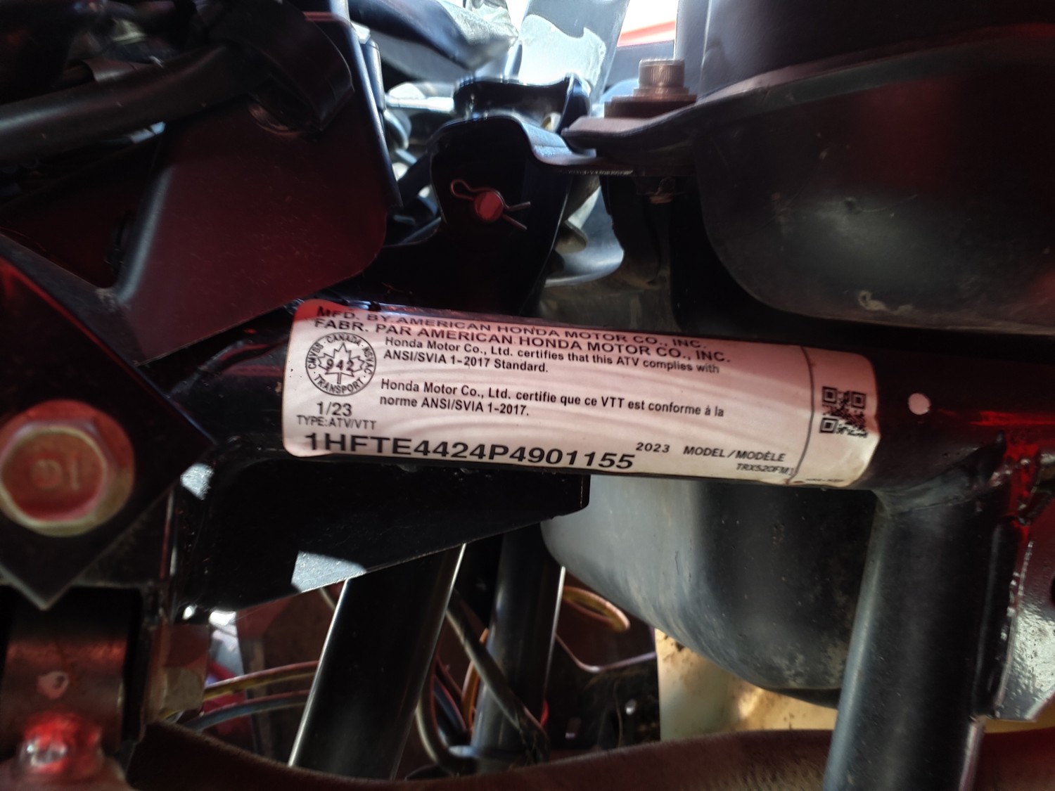 518 cc fuel injected water cooled engine, manual transmission, reverse, hitch, front and rear racks, front winch, 29X9-12 front tires, 26X11-12 rear tires