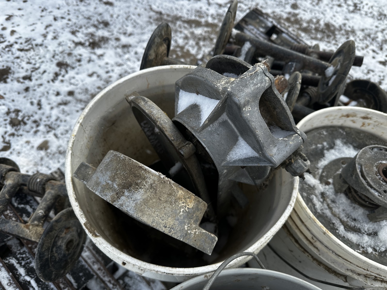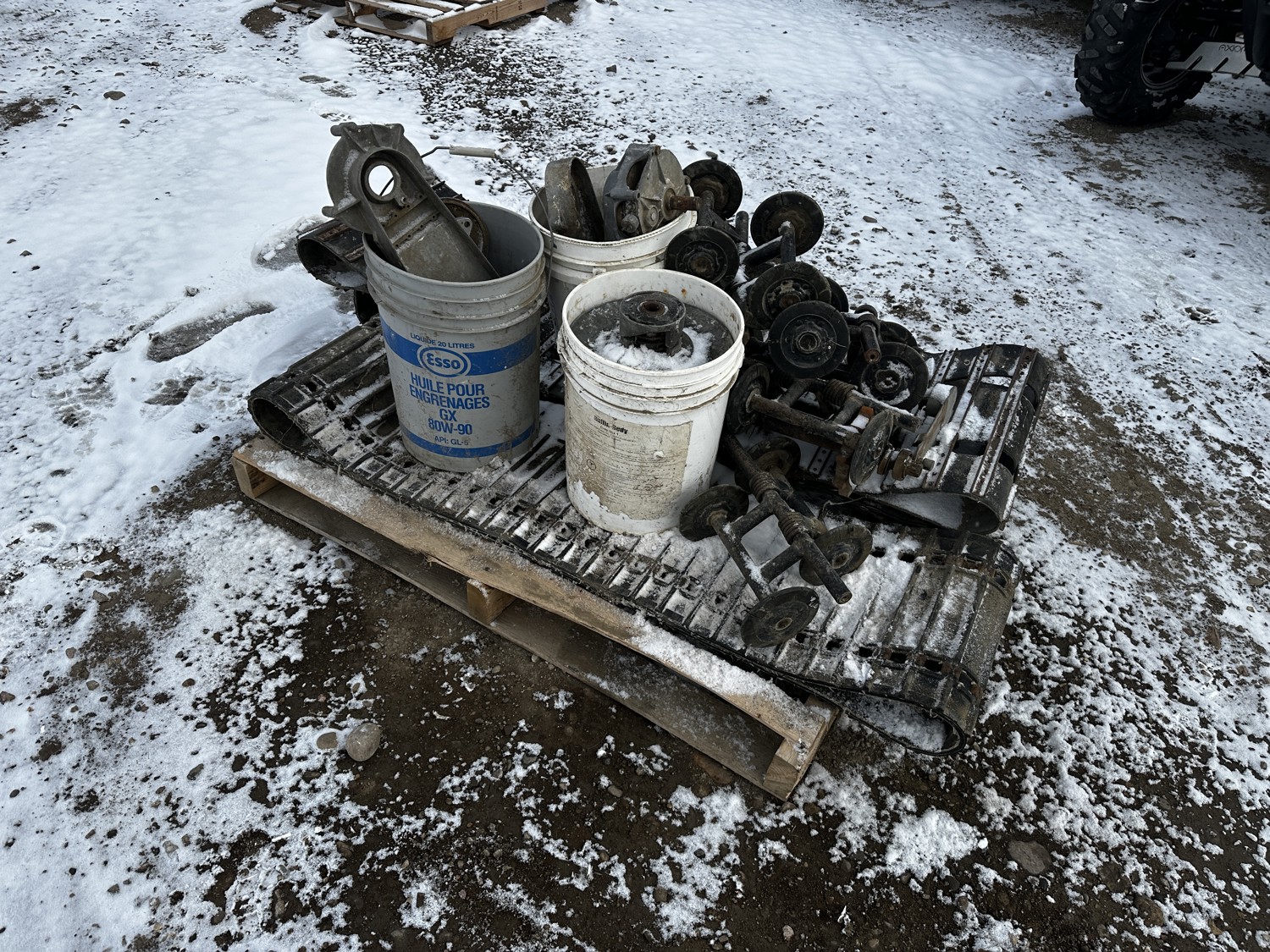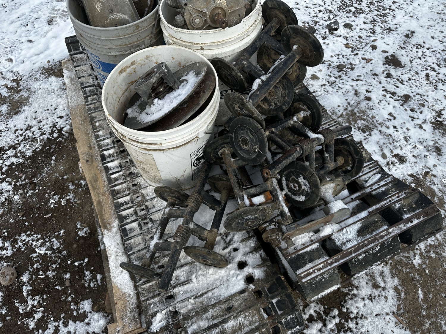 includes (2) miscellaneous tracks (1) 15 inch width (1) 17 inch width, (6) rollers, miscellaneous housing for pulleys, miscellaneous belt drive assembly's