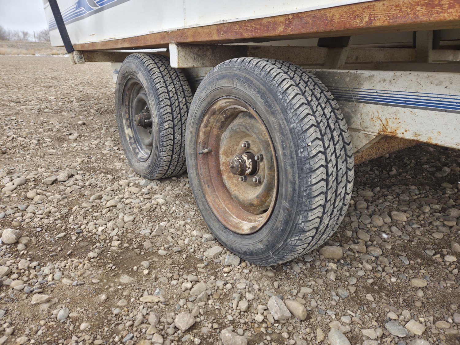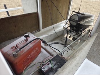 Evinrude Lark IV outboard engine, P195/70R14 90S tires, 2 inch hitch