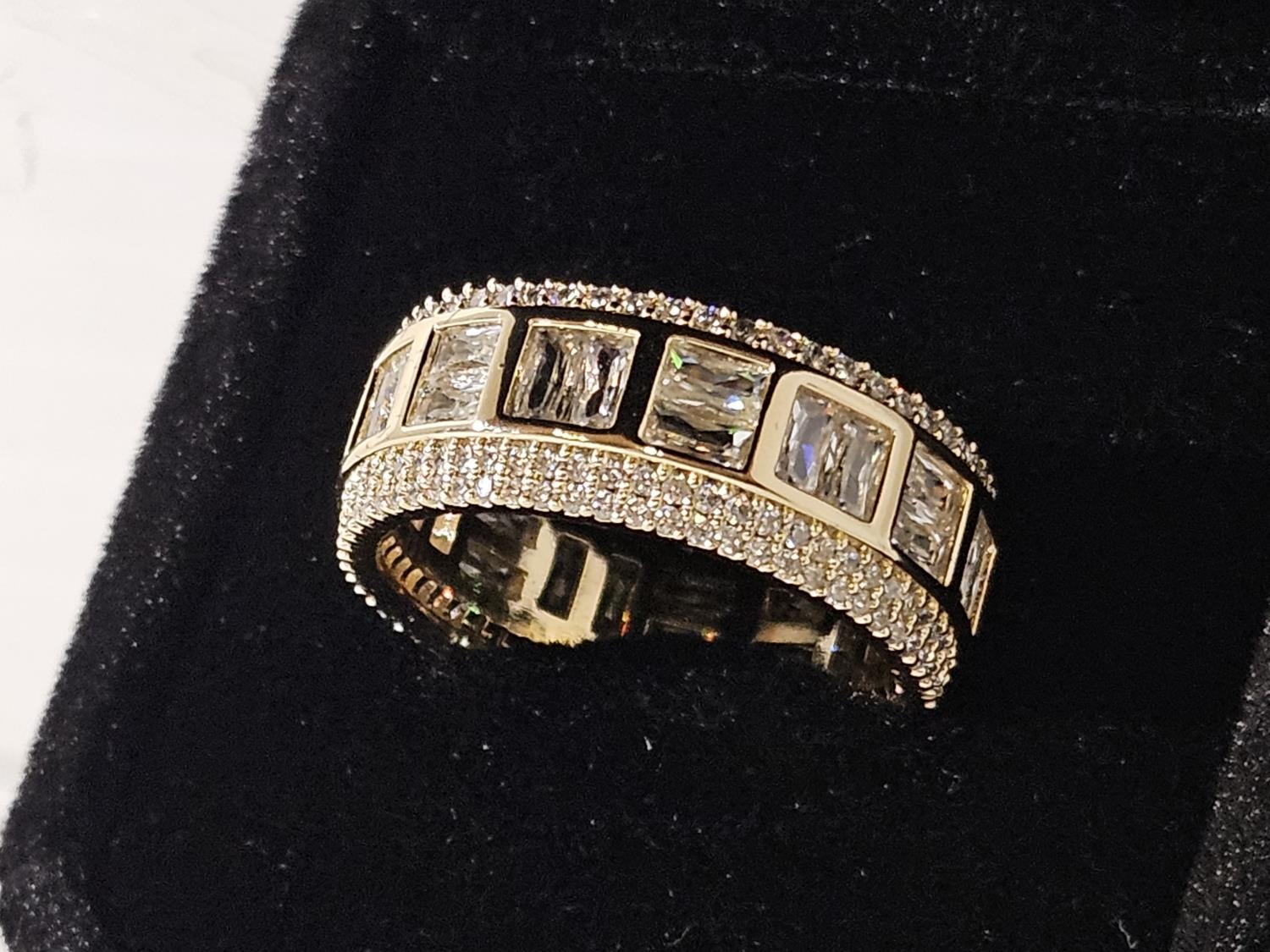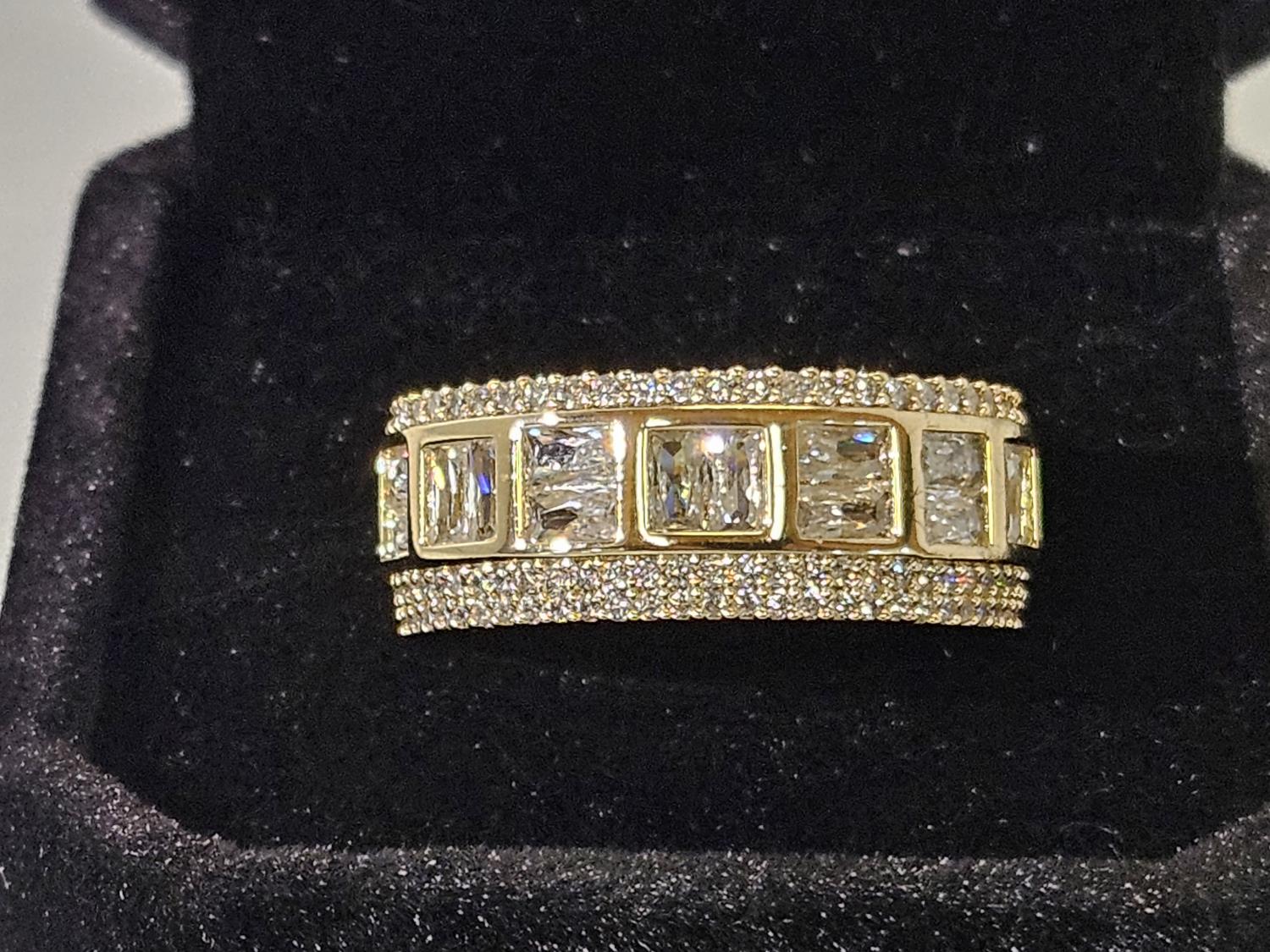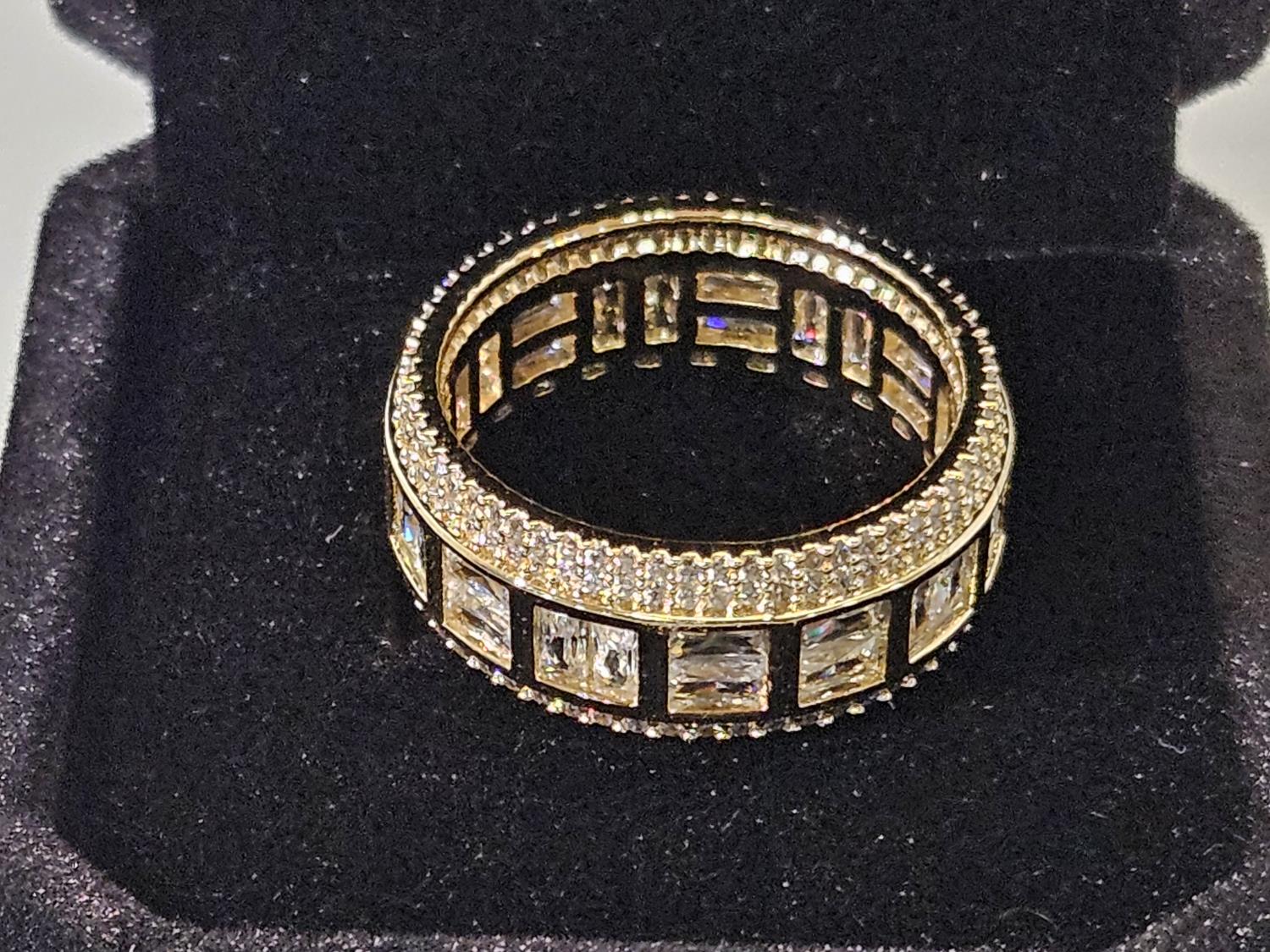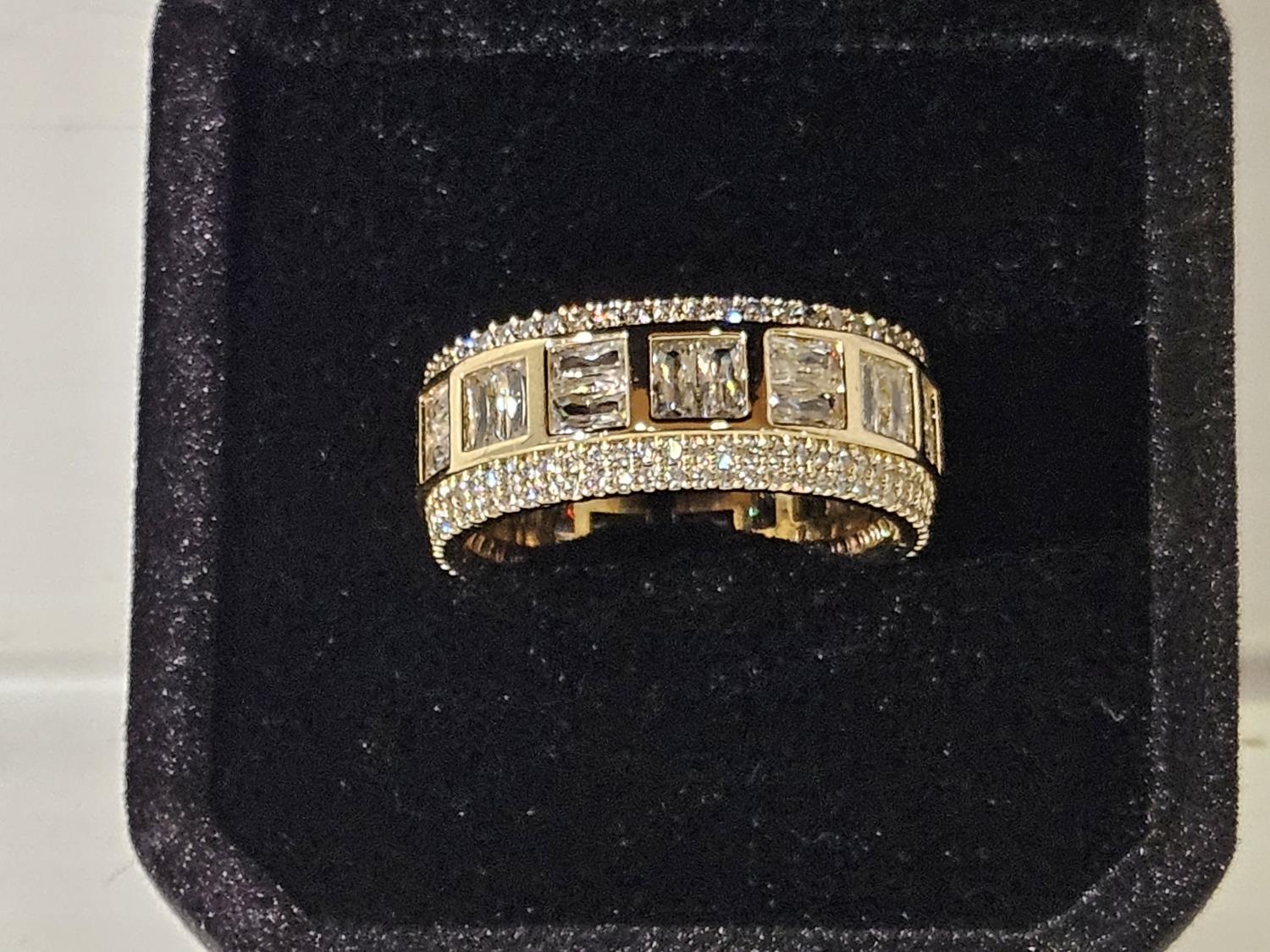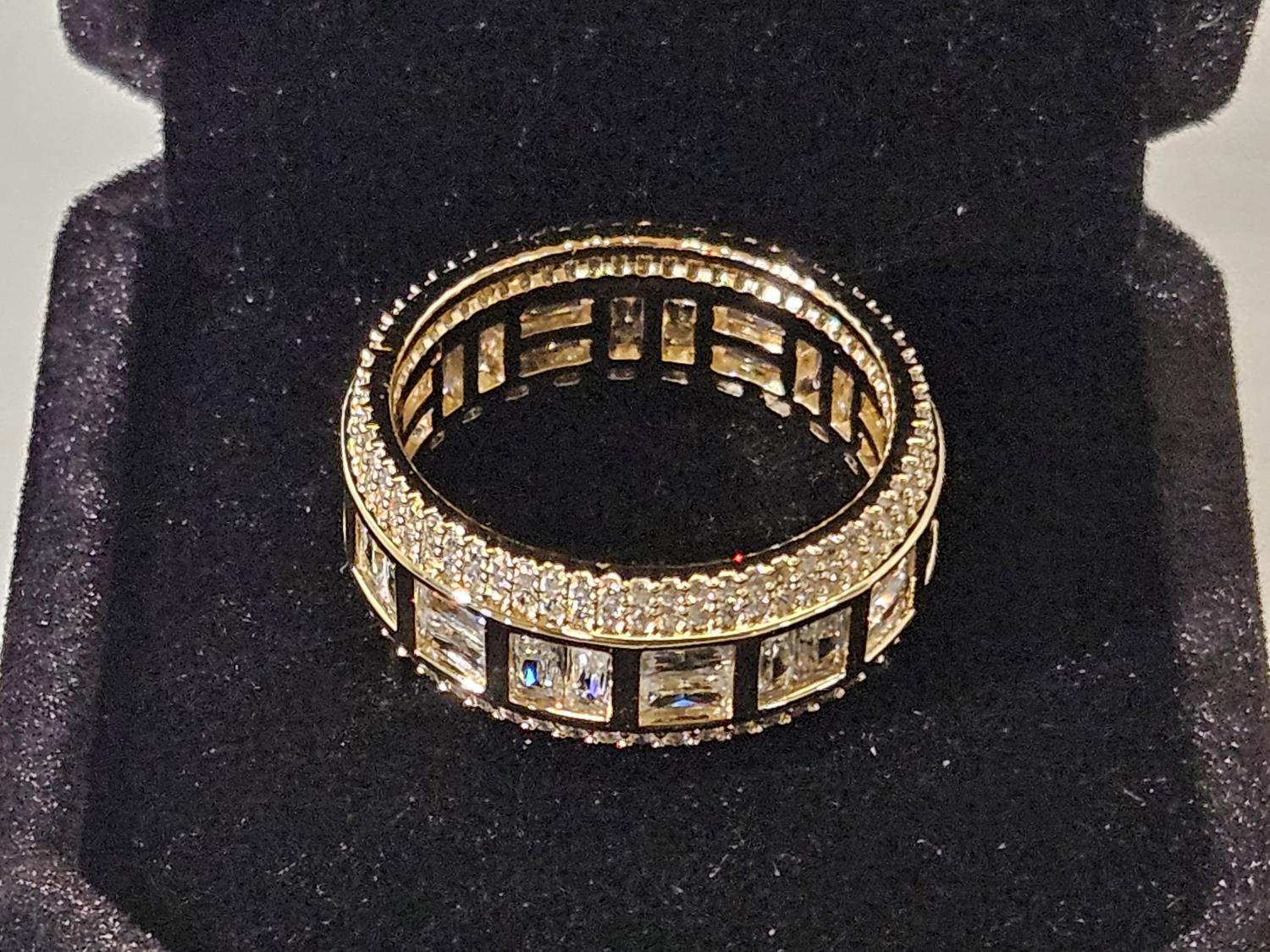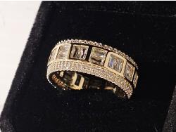 7091 Smartlife 14K Gold Plated 8.5 mm Princess Cut Simulated Diamond (CZ) Man's Ring - Size 10 (Unused)