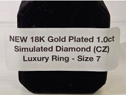 7089 Smartlife 18K Gold Plated 1.0 Ct Simulated Diamond (CZ) Luxury Ring - Size 7 (Unused)