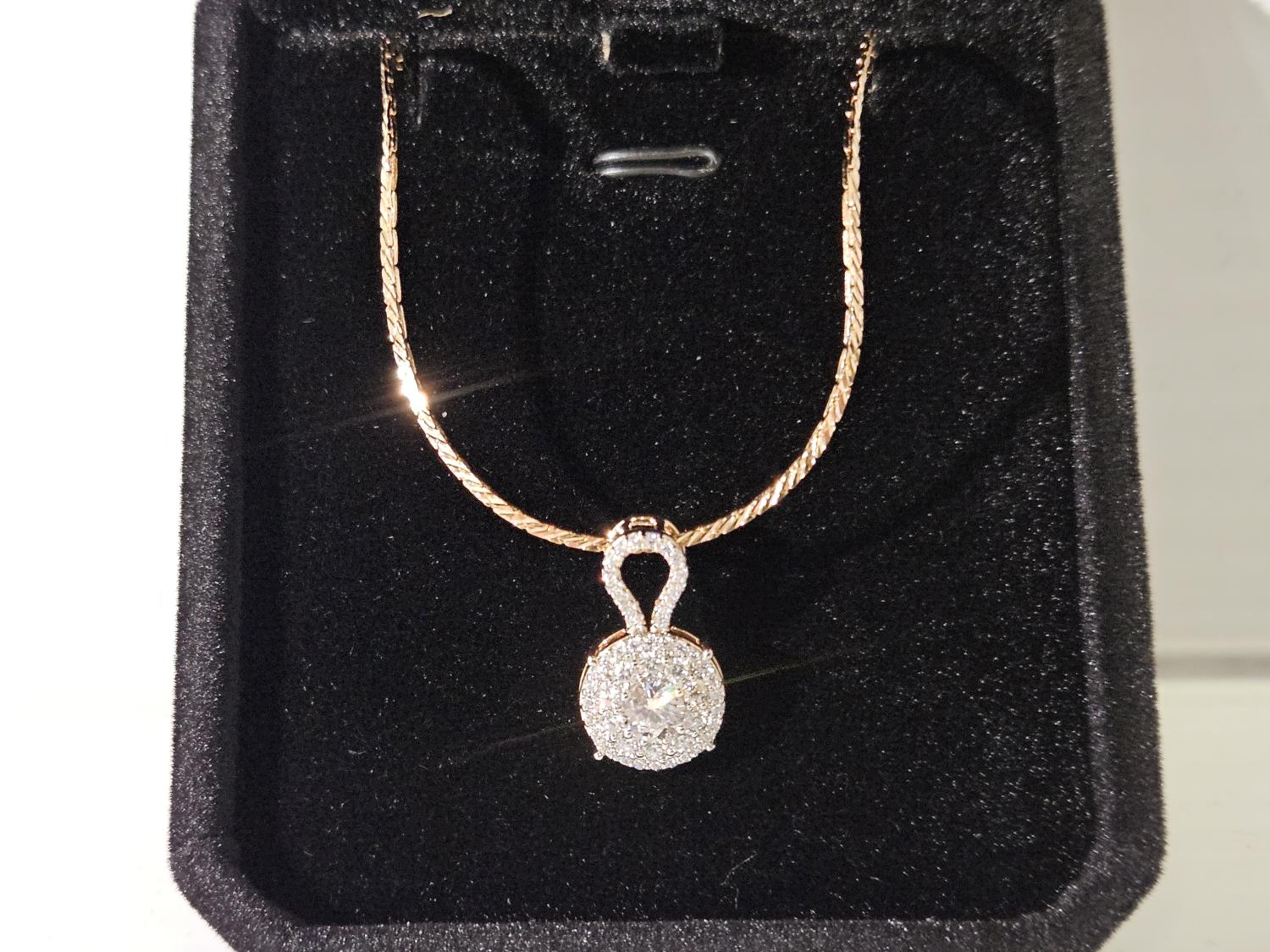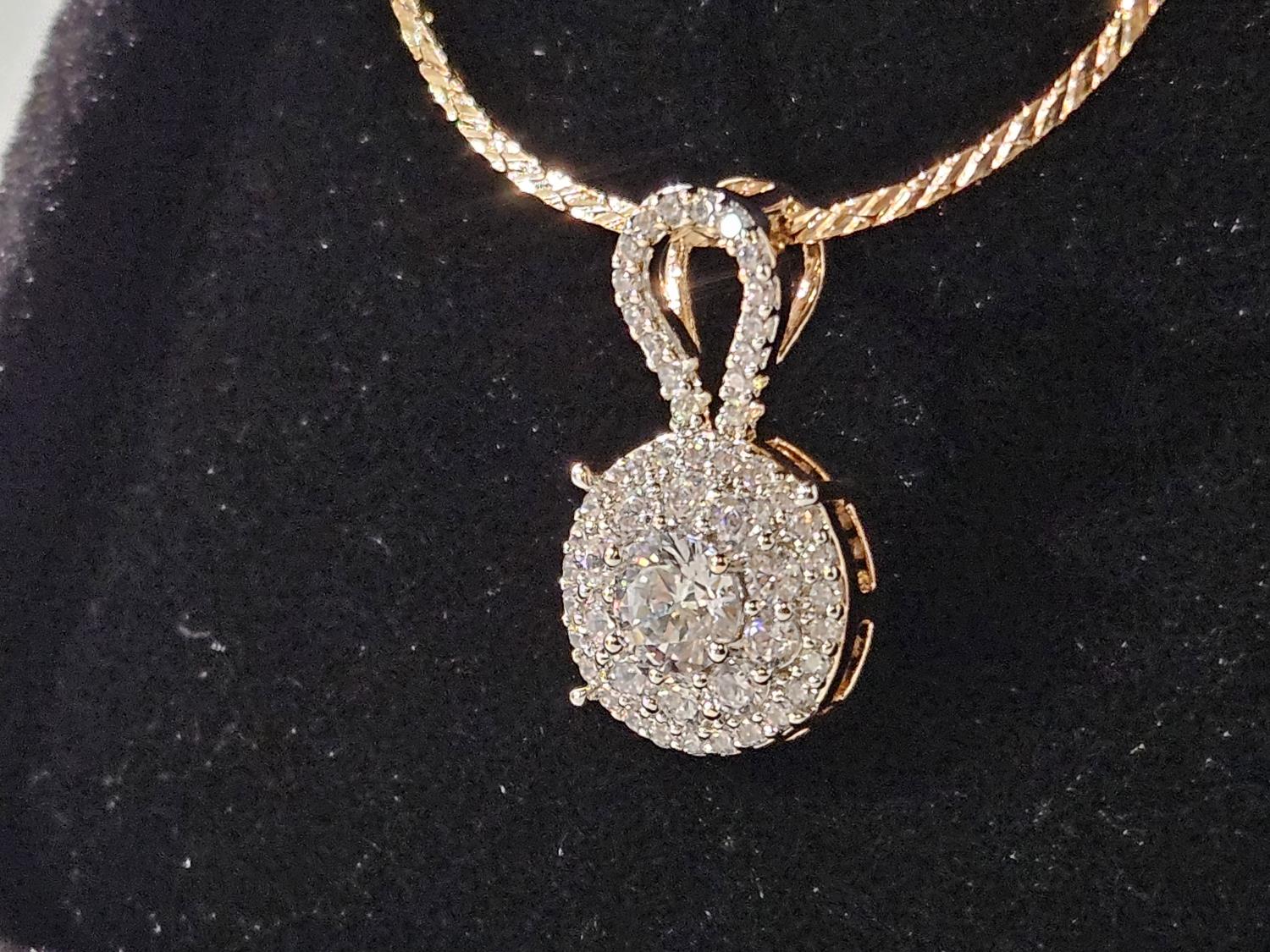 7087 Smartlife 18K Gold Plated 18.0 mm Simulated Diamond (CZ) Cluster Necklace (Unused)