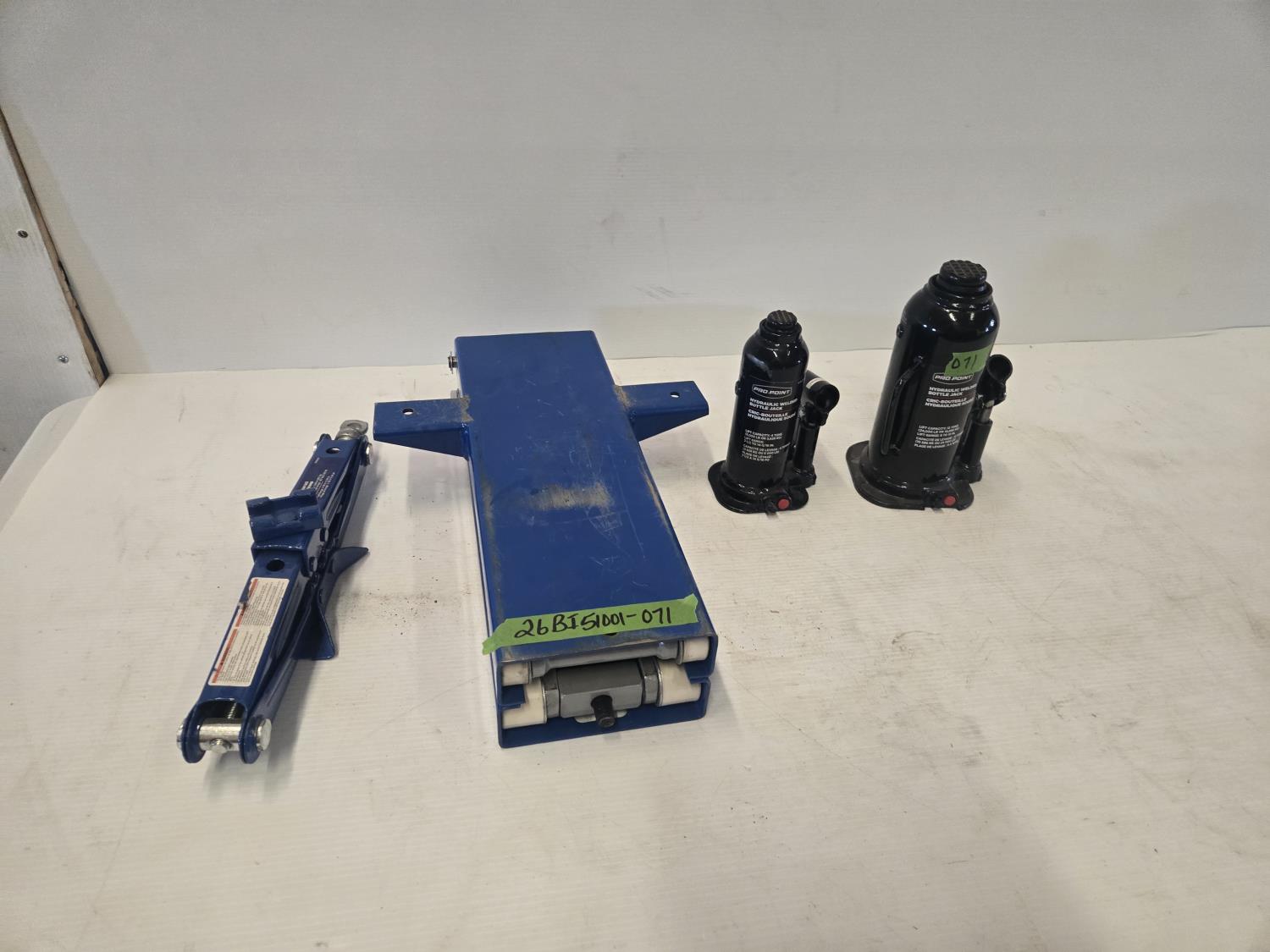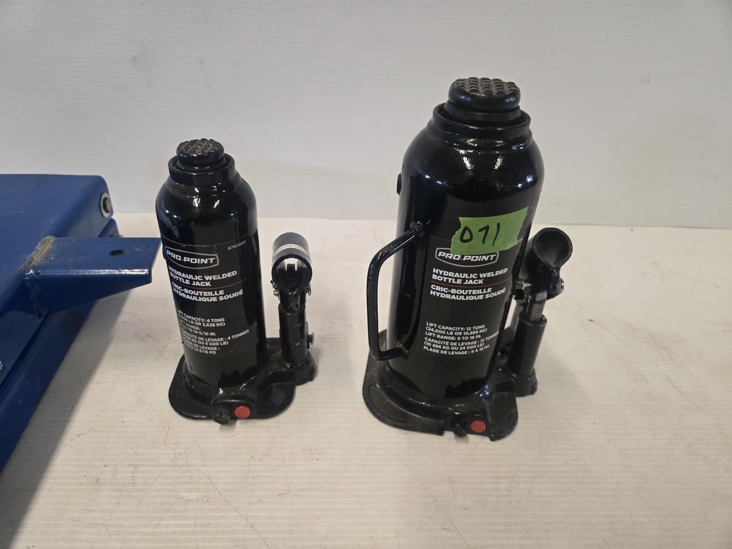 (1) 4 ton bottle jack, (1) 12 ton bottle jack, (2) screw jacks
