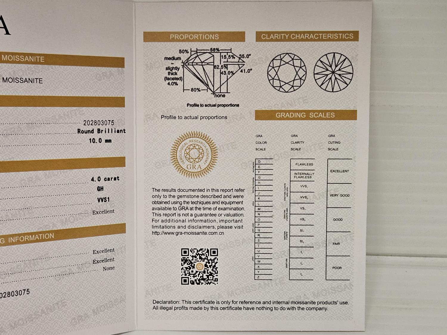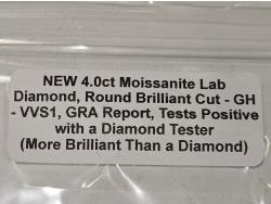 7076 Smartlife 4.0 Ct Moissanite Lab Diamond, Round Brilliant Cut - GH - VVS1 (Unused)