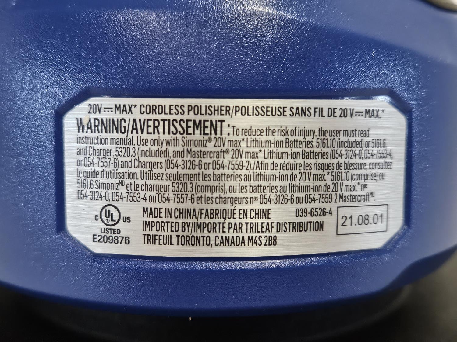 includes 4.0 Ah battery, 20V lithium-ion battery charger, carry bag, (2) polish pads