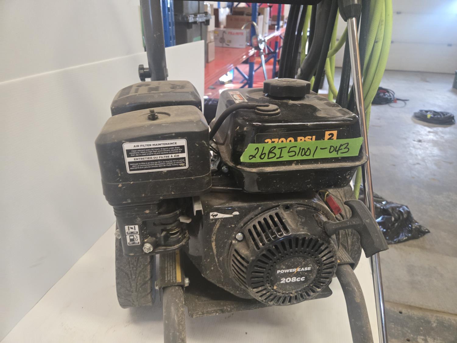 Power Ease 208 cc gas engine, 2700 PSI, 2.5 GPM, hose & wand, on cart