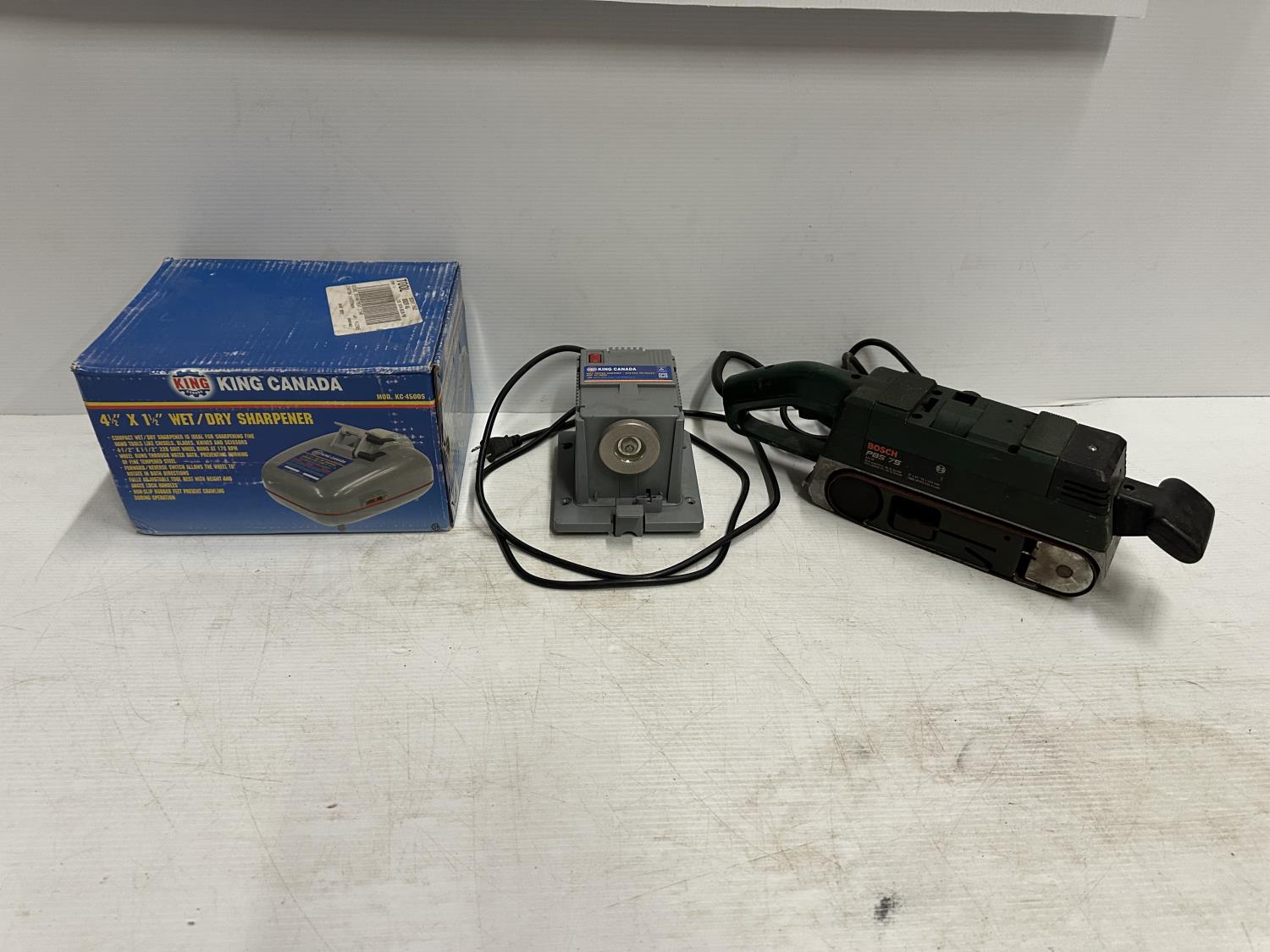 7271 King Canada Multi-Purpose Sharpener, 4-1/2 Inch X 1-1/2 Inch Wet/Dry Sharpener and Bosch Belt Sander