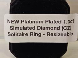 7090 Smartlife Platinum Plated 1.0 Ct Simulated Diamond (CZ) Solitaire Ring - Resizeable (Unused)