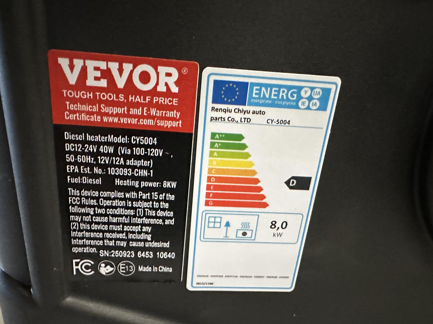 7292 Vevor CY5004 Portable Diesel Heater (Unused)