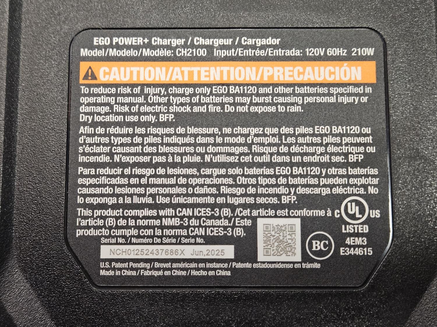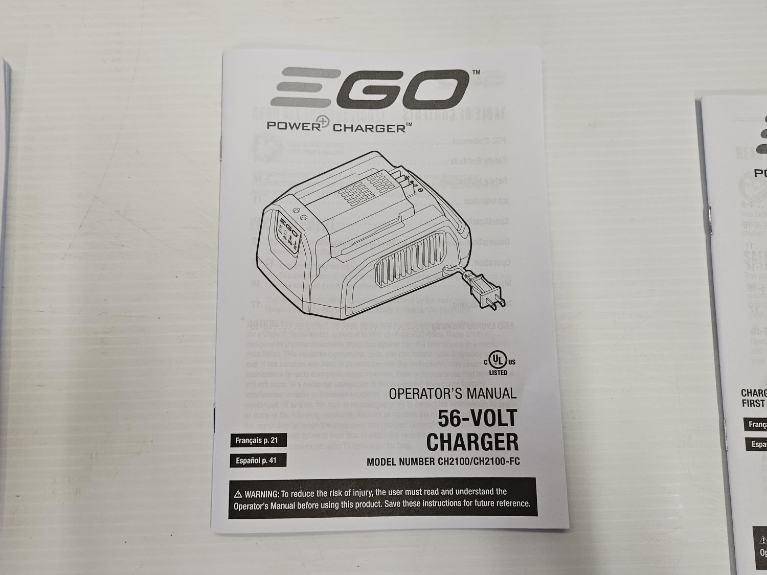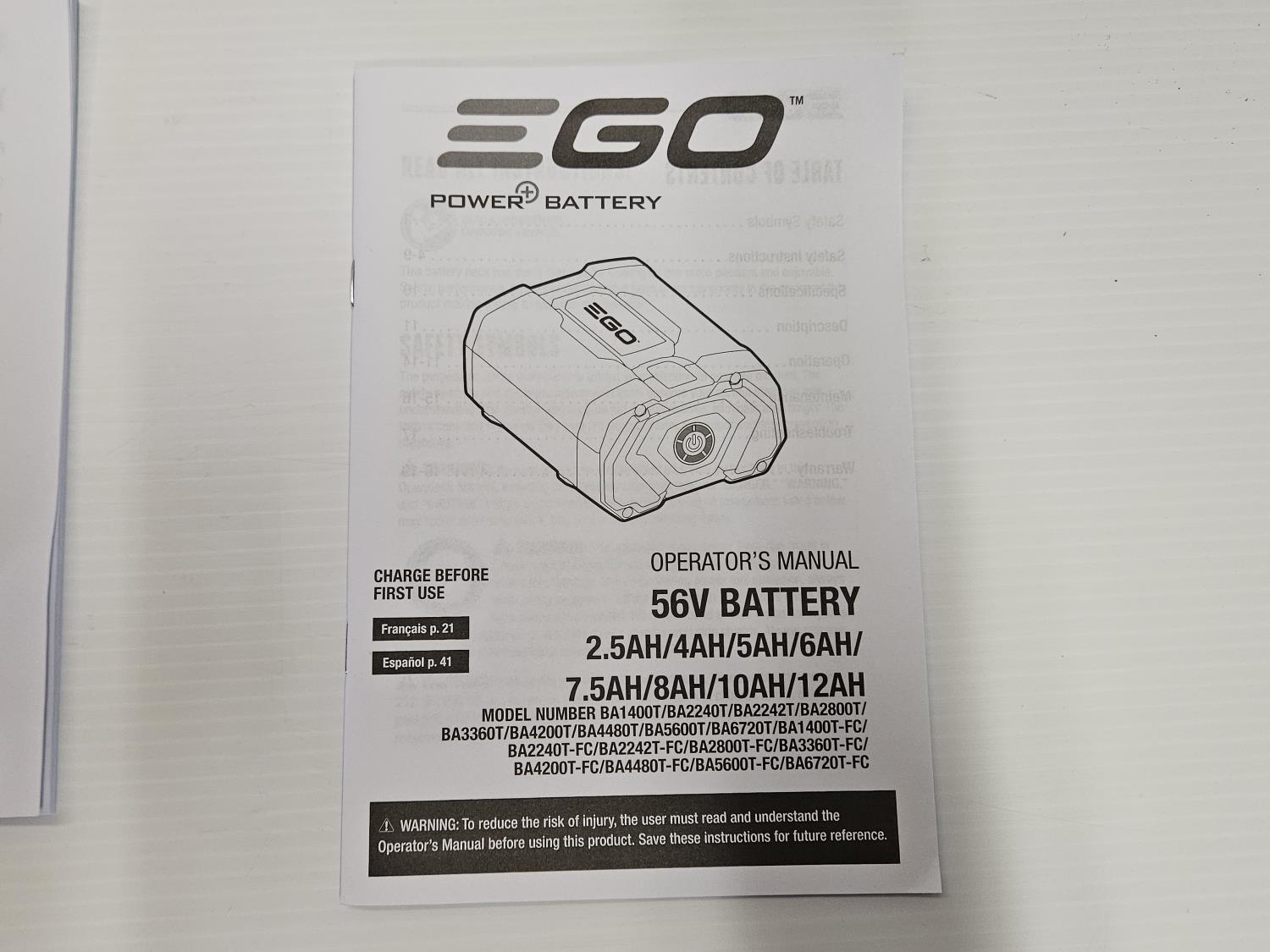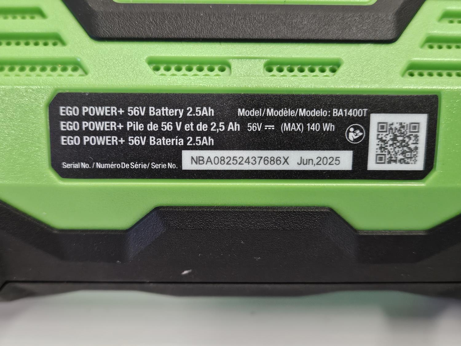 includes EGO 56V lithium-ion battery, EGO power charger