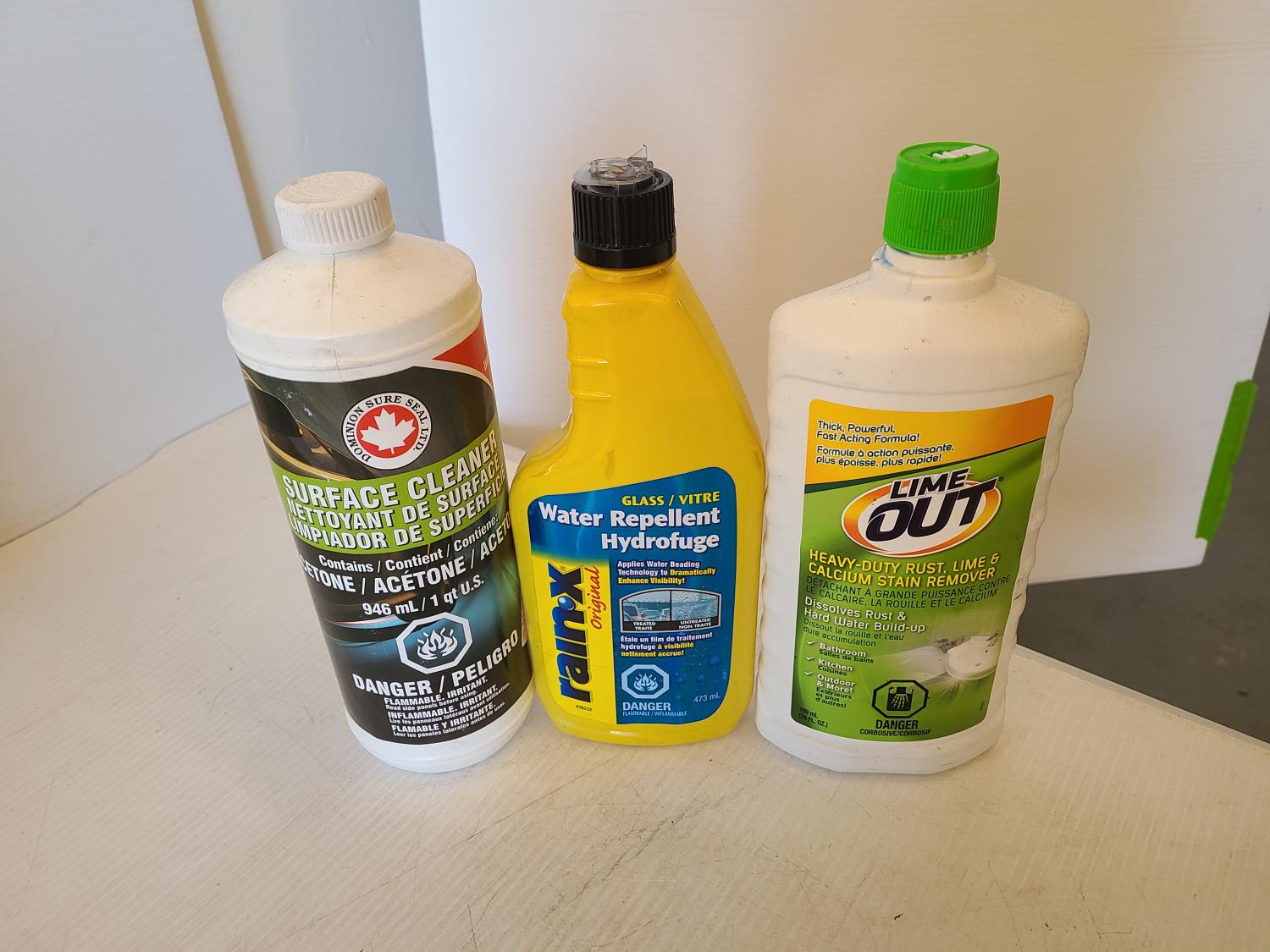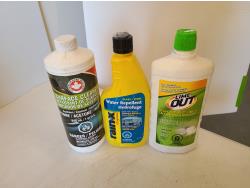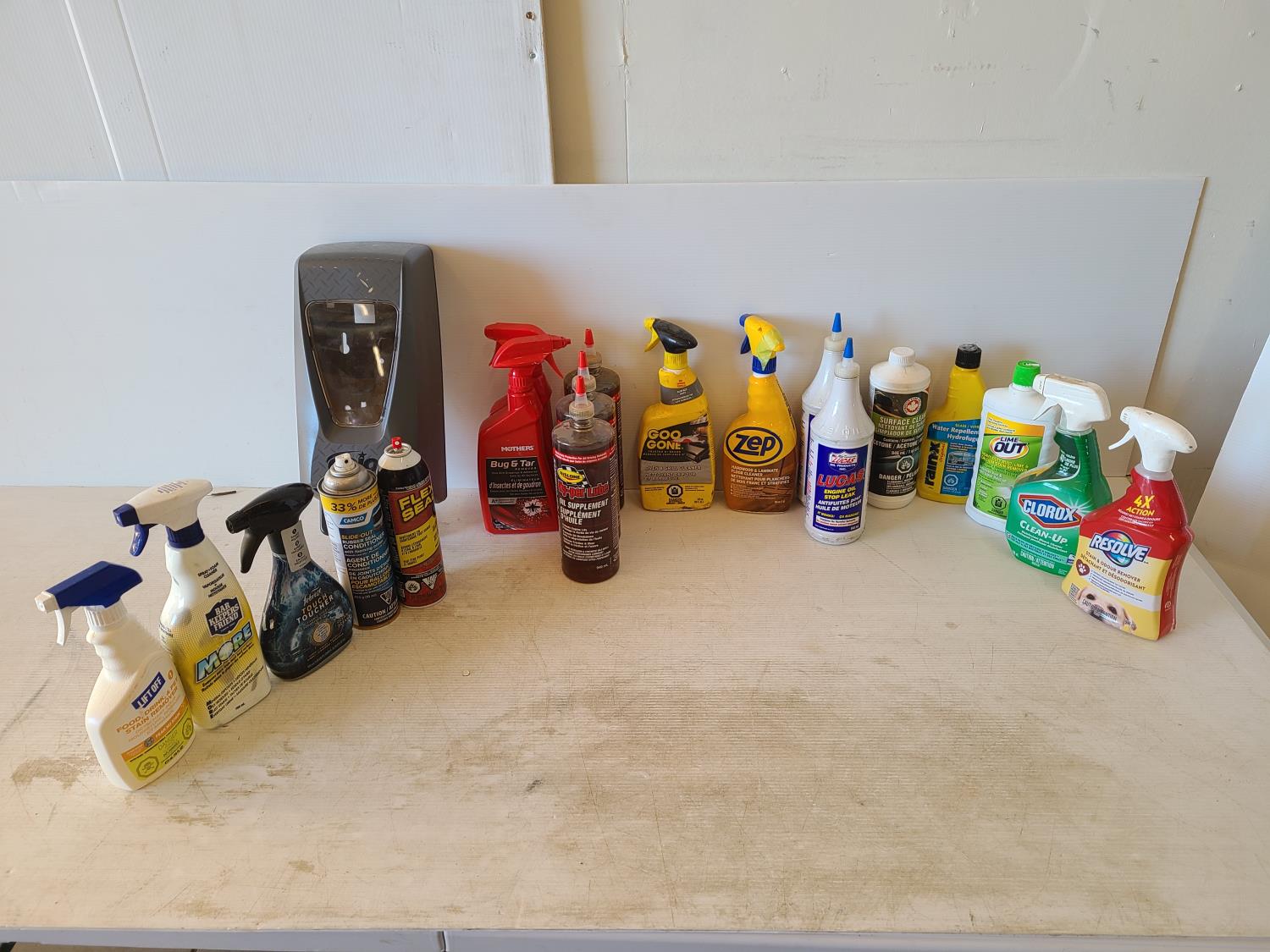 Rislone oil supplement, lucas stop leak, resolve stain & odour remover, rain-x, gojo soap dispenser