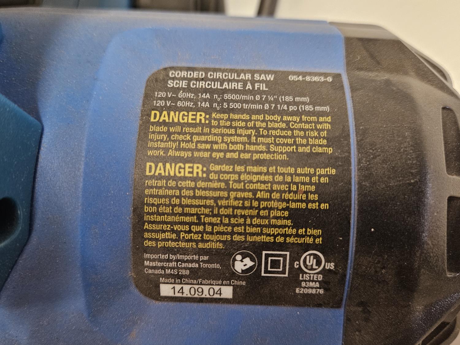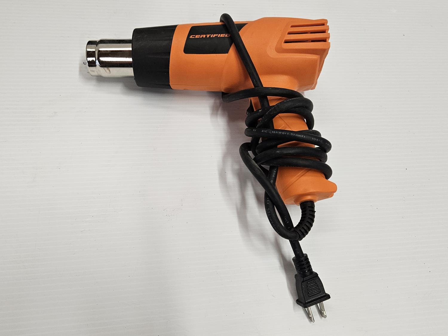 includes (1) Mastercraft 7-1/4 inch circular saw, (1) Certified 3/8 inch corded drill, (1) Certified 120V heat gun