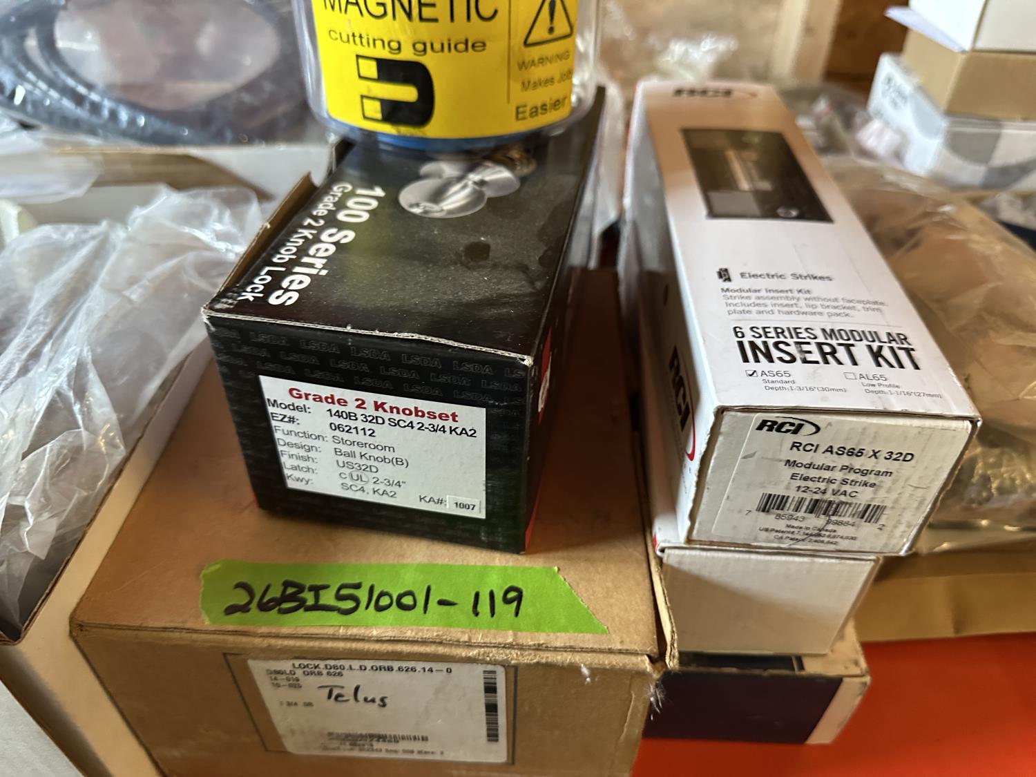 7191 Qty of Electric Strikes, Door Knob, Magnetic Cutting Guides and Parts