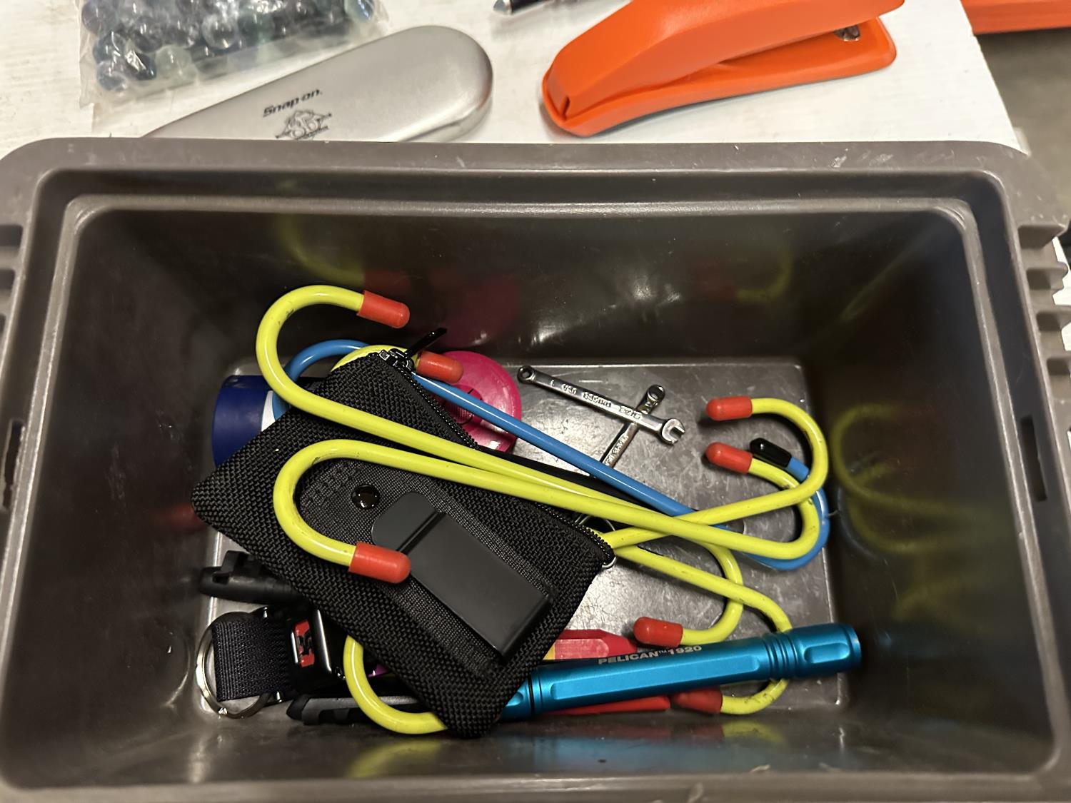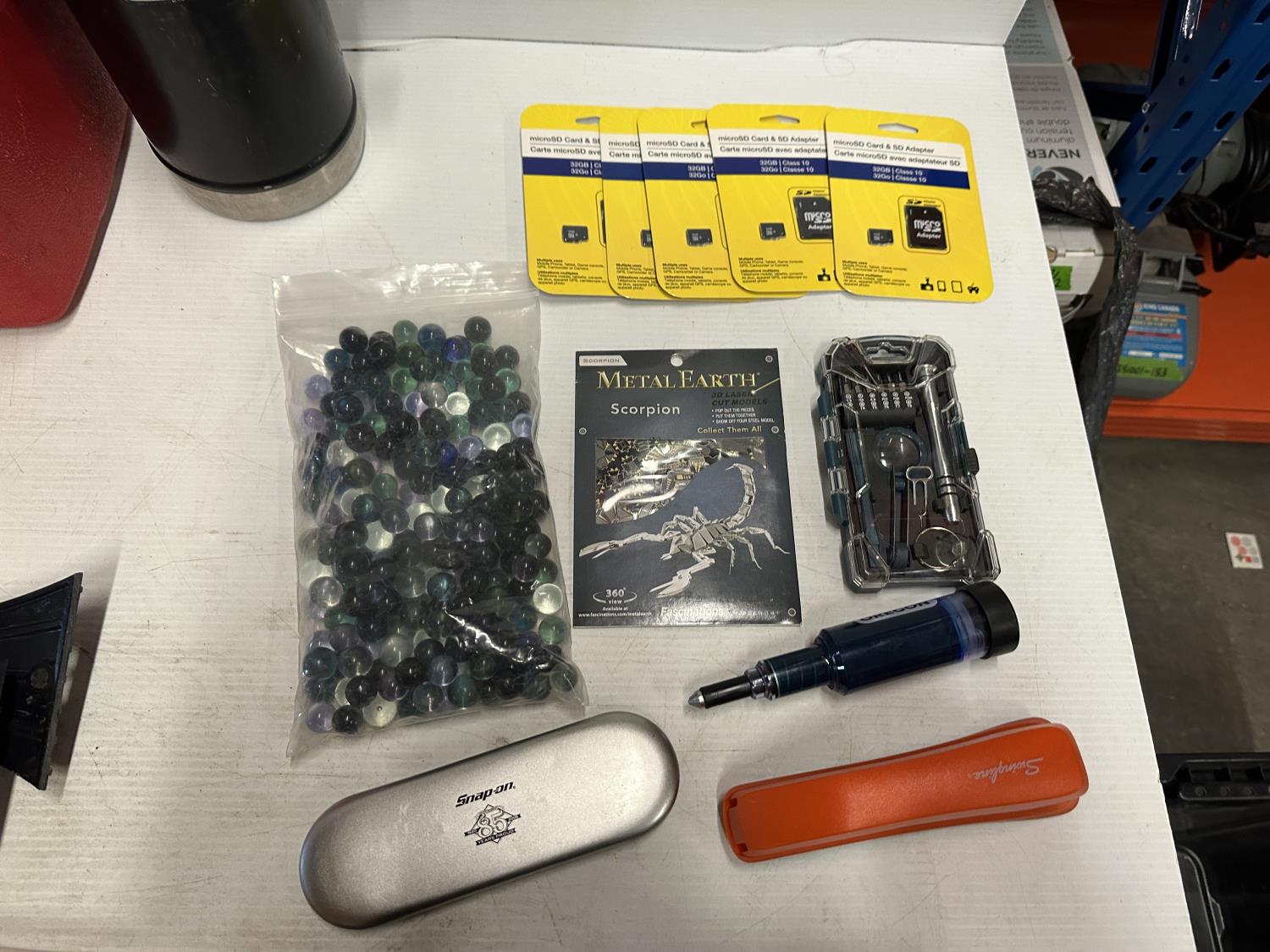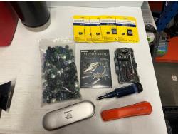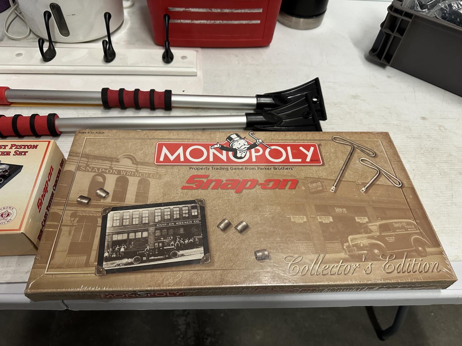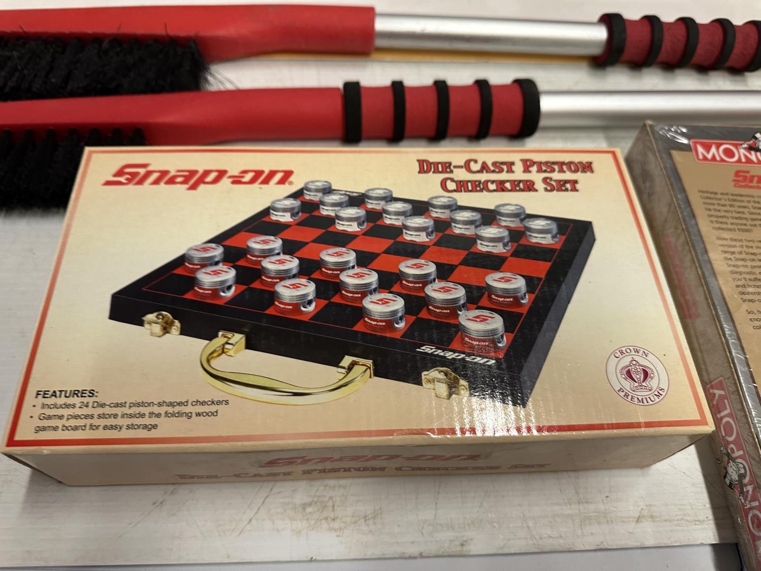 yoga mat, Snap-On Cool Box, (5) micro SD cards, (2) snow brushes, Monopoly Snap-On game, hook rail, Snap-On checker game