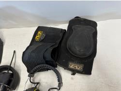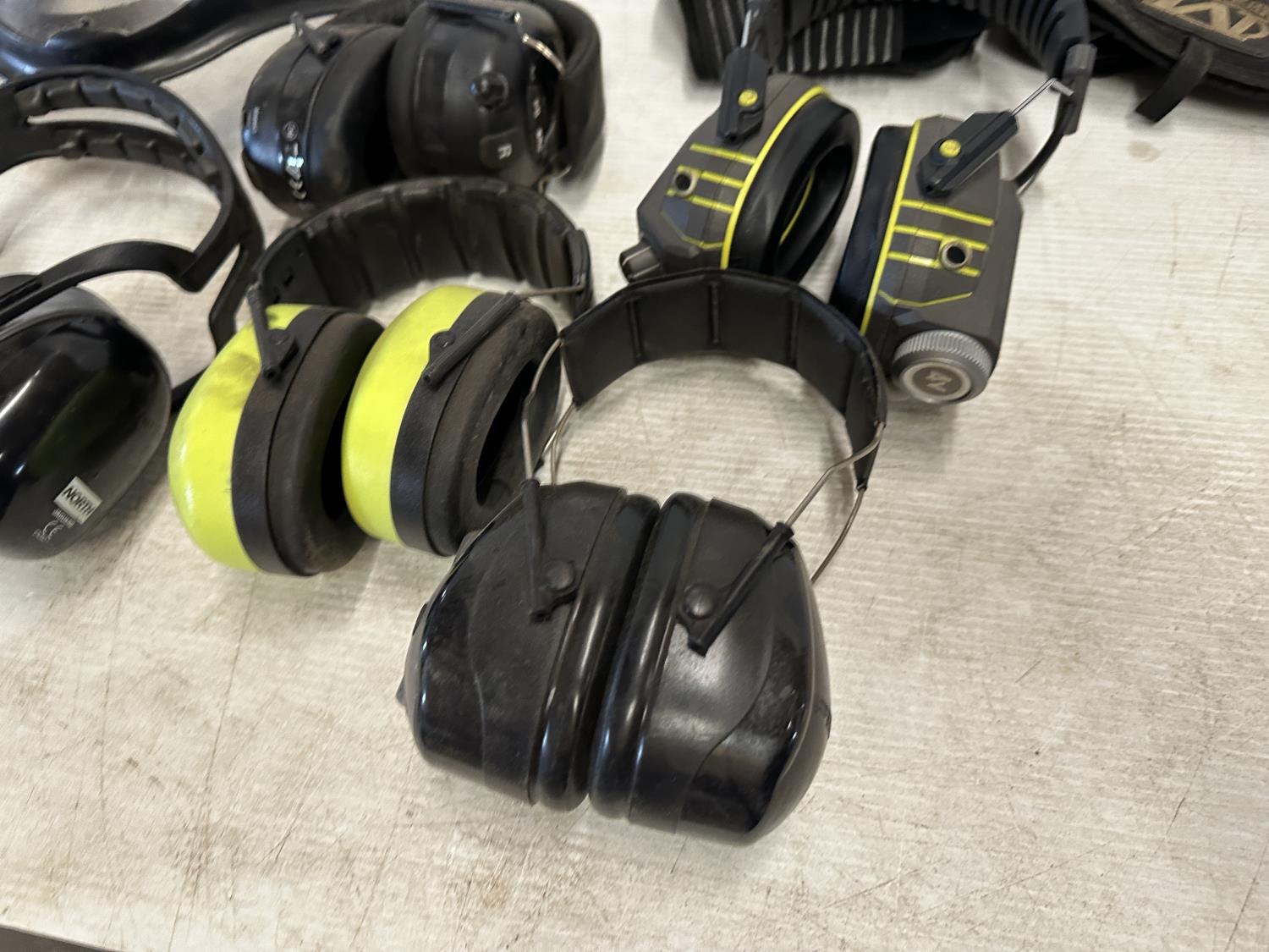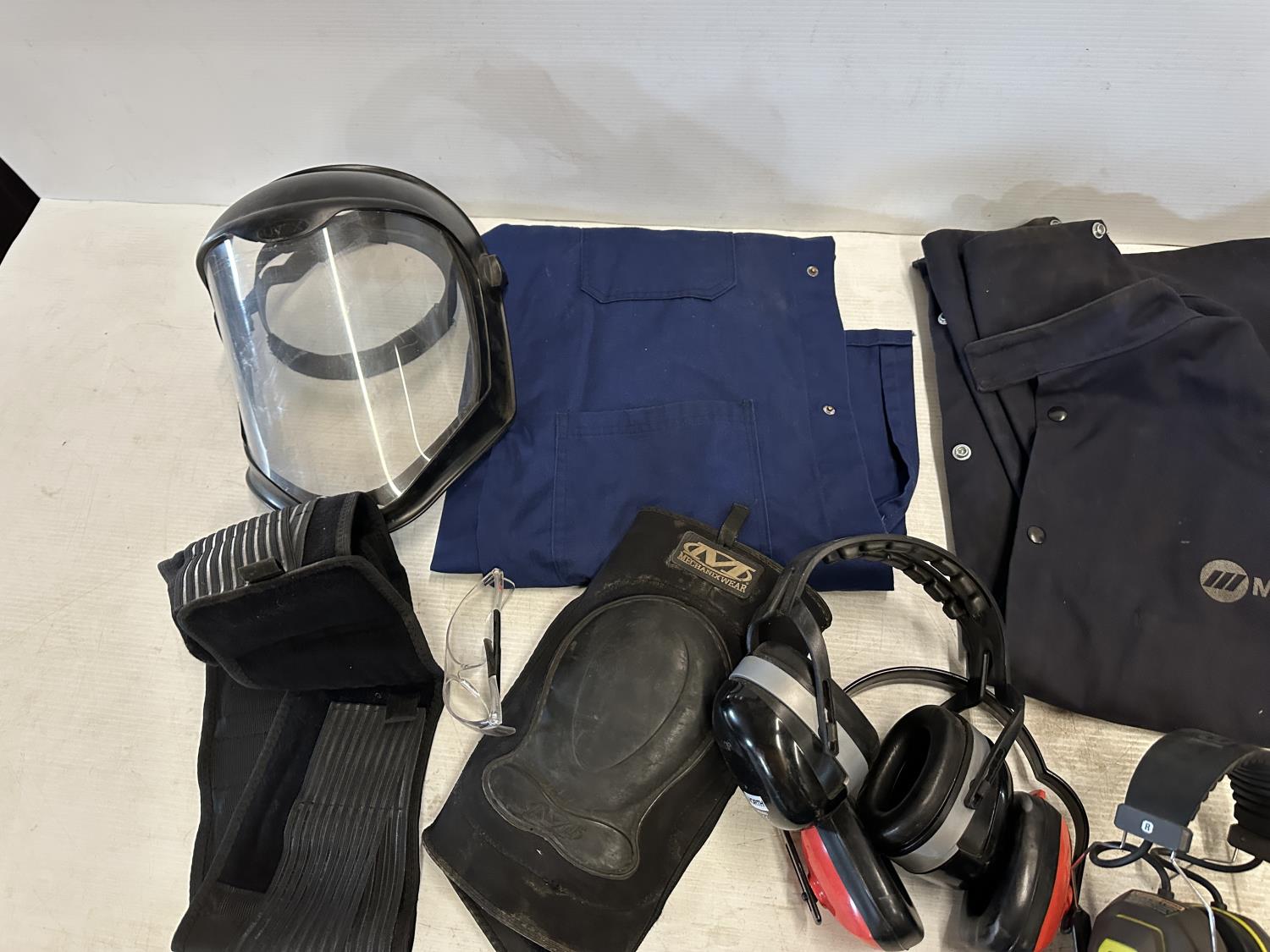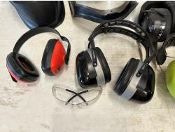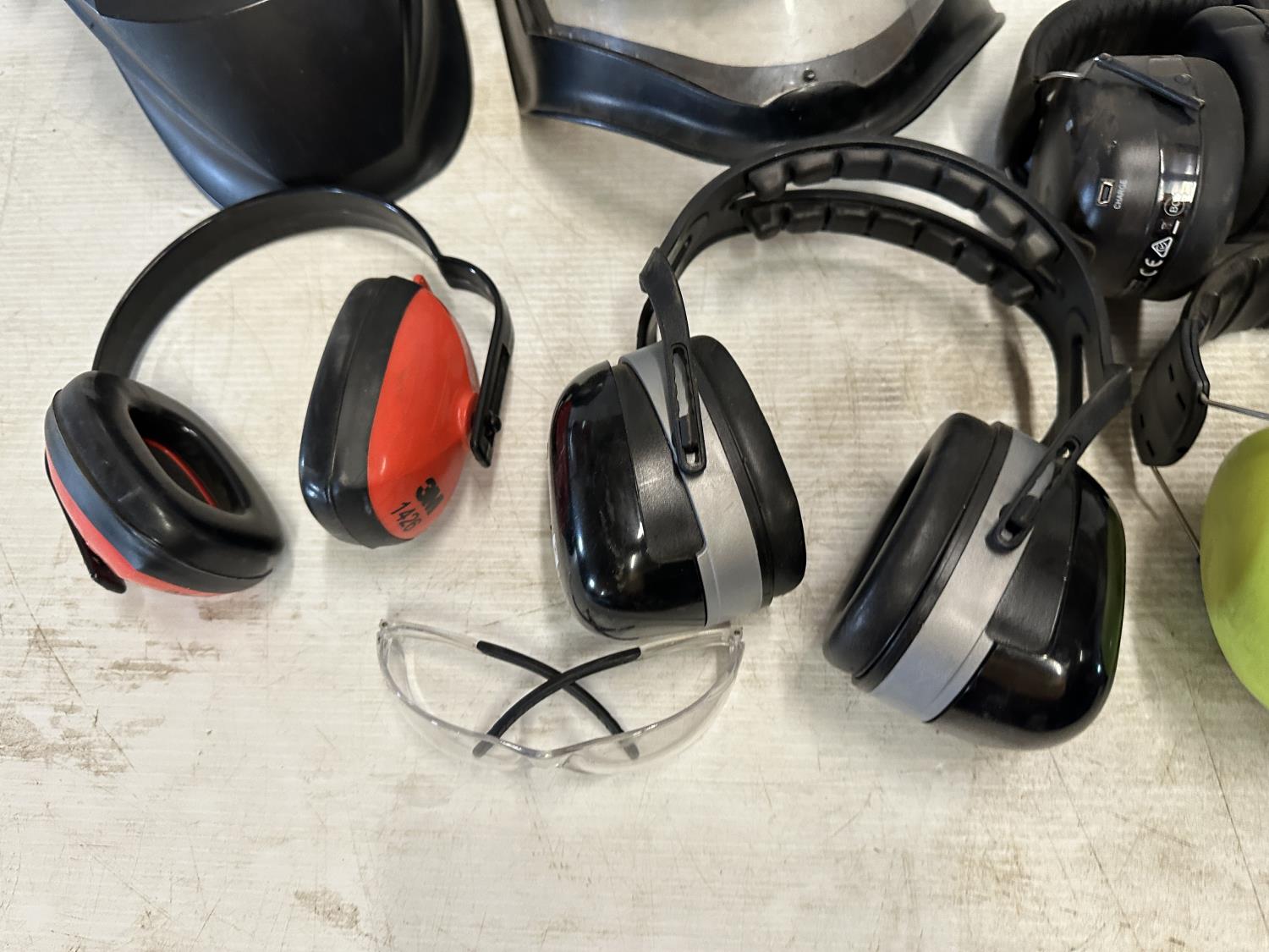 ear muffs, face shield, welding helmet