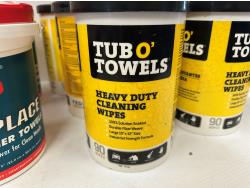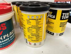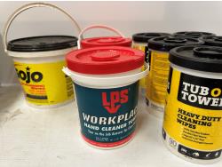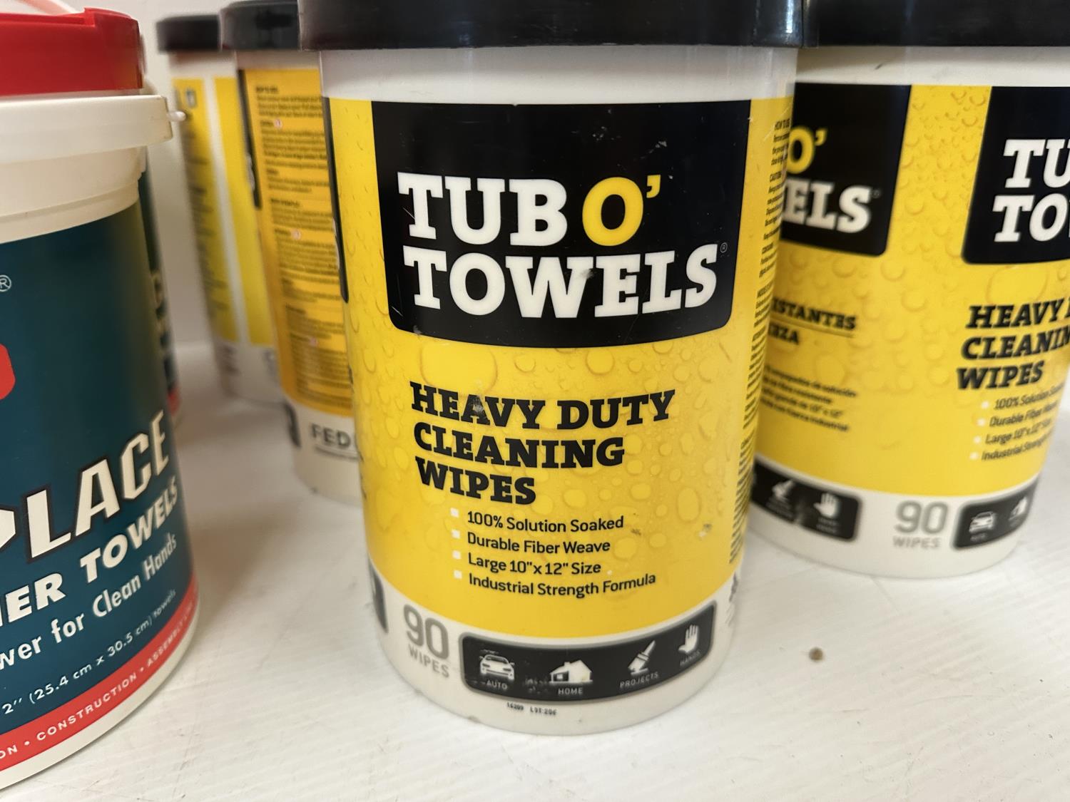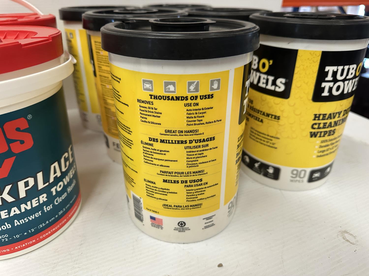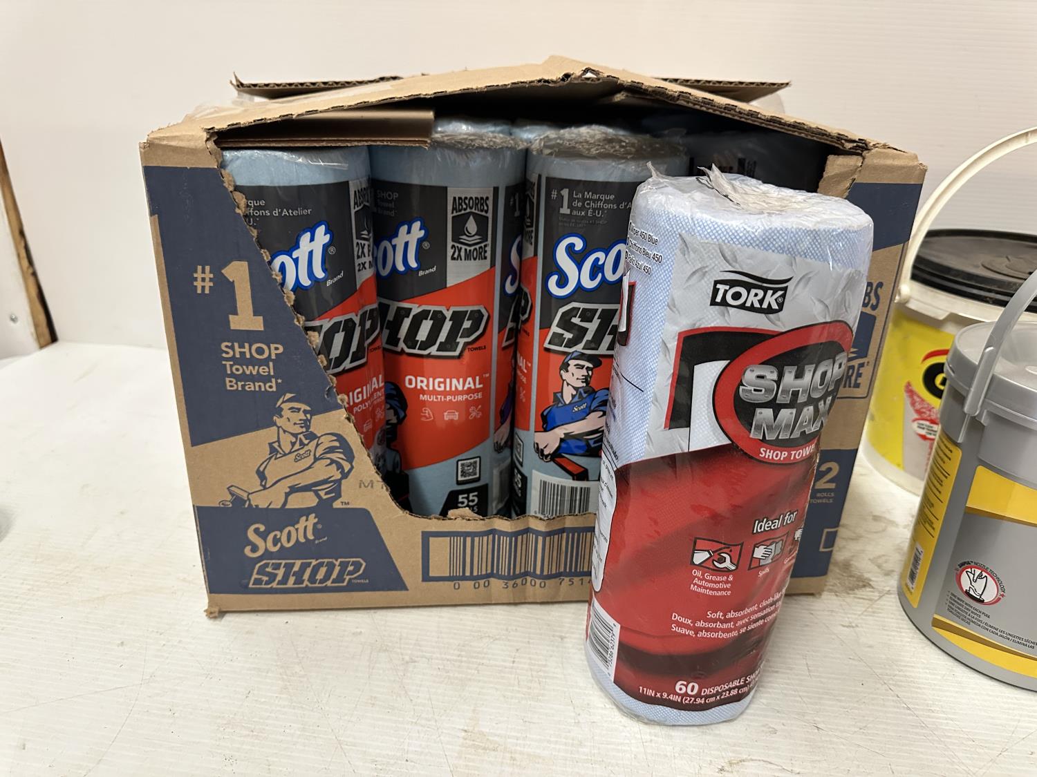 (10) rolls of shop towels, (6) Tub-O' Towels, LPS hand cleaner, Gojo scrubbing wipes,