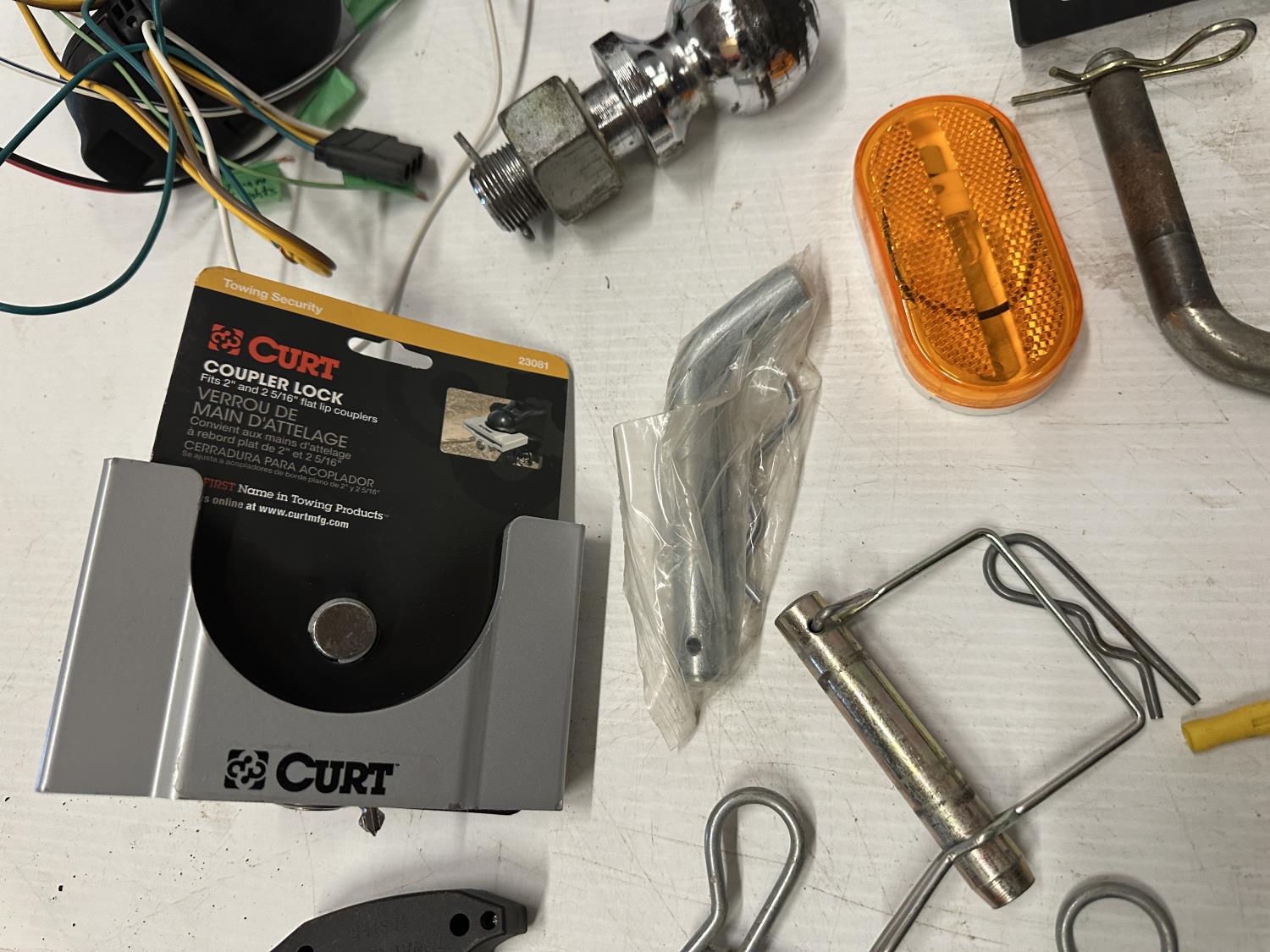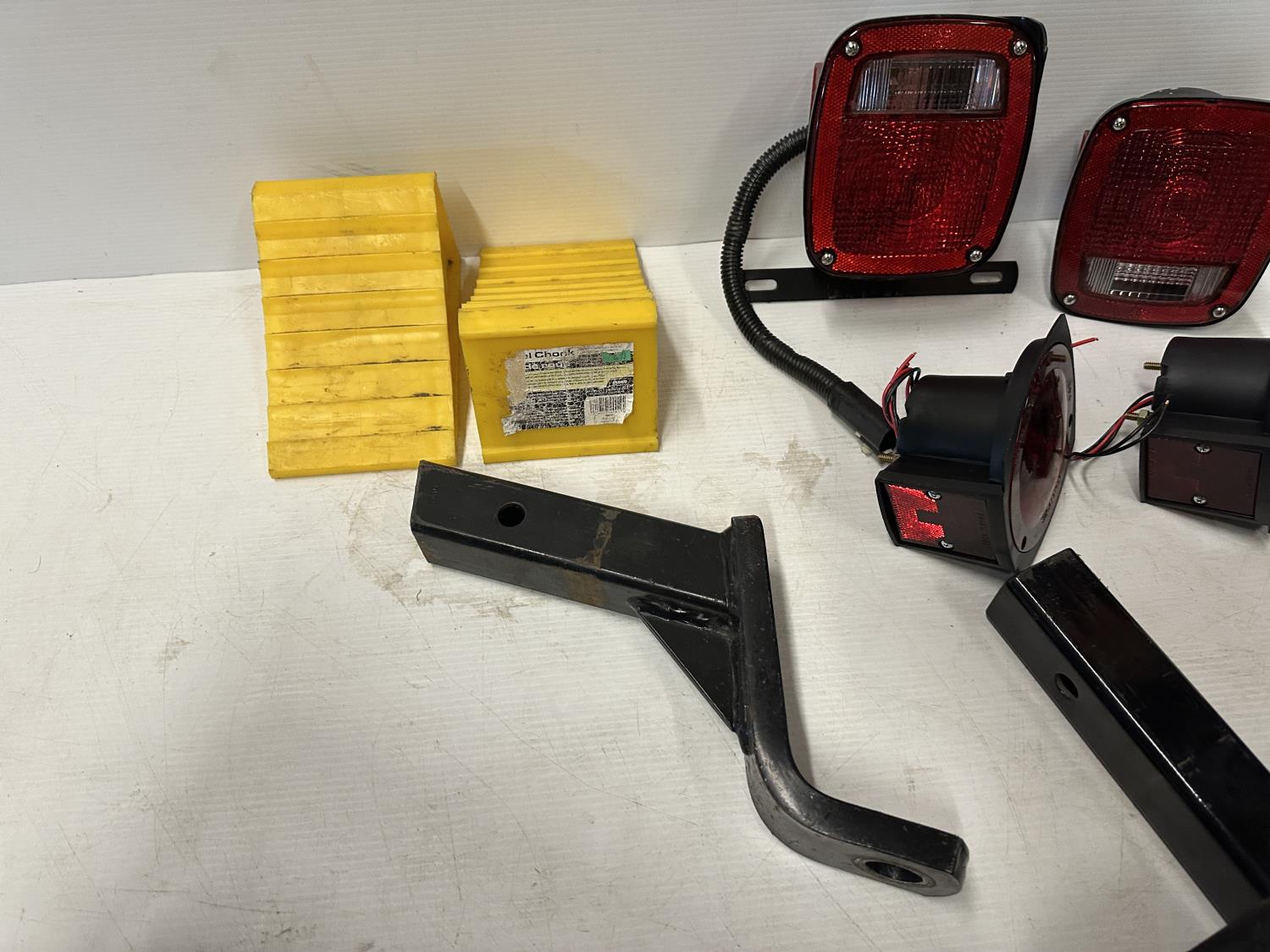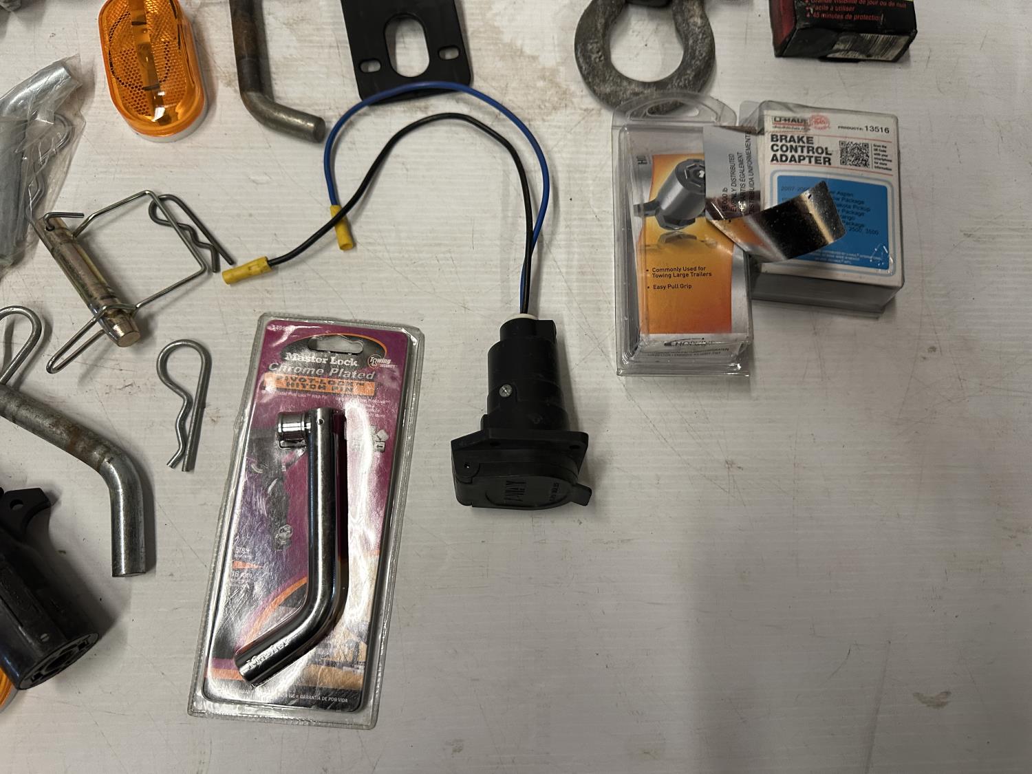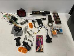 lights, hitch step, drop hitches, chocks, coupler lock, brake control adapter, hitch pins, light testers, trailer plugs