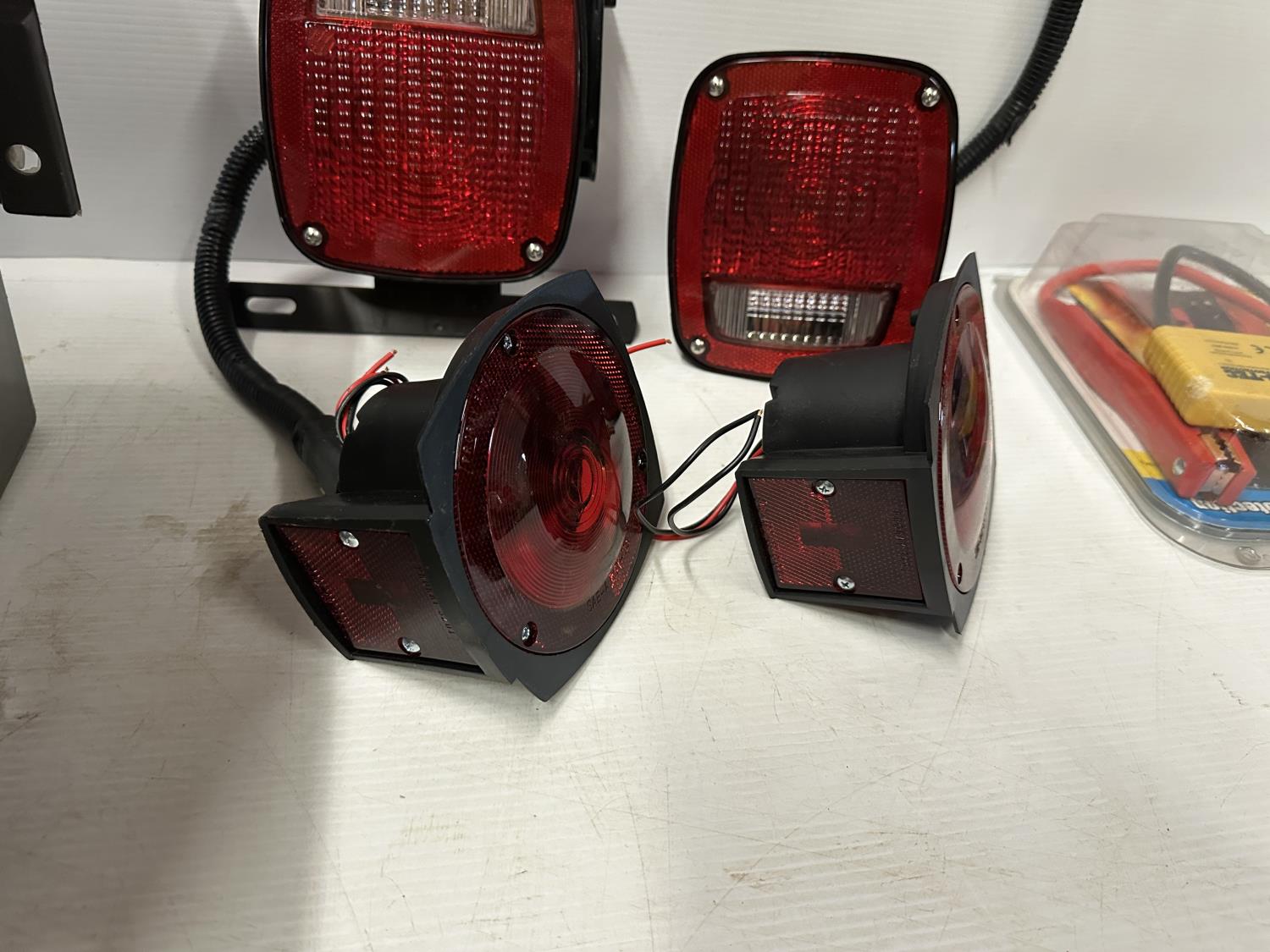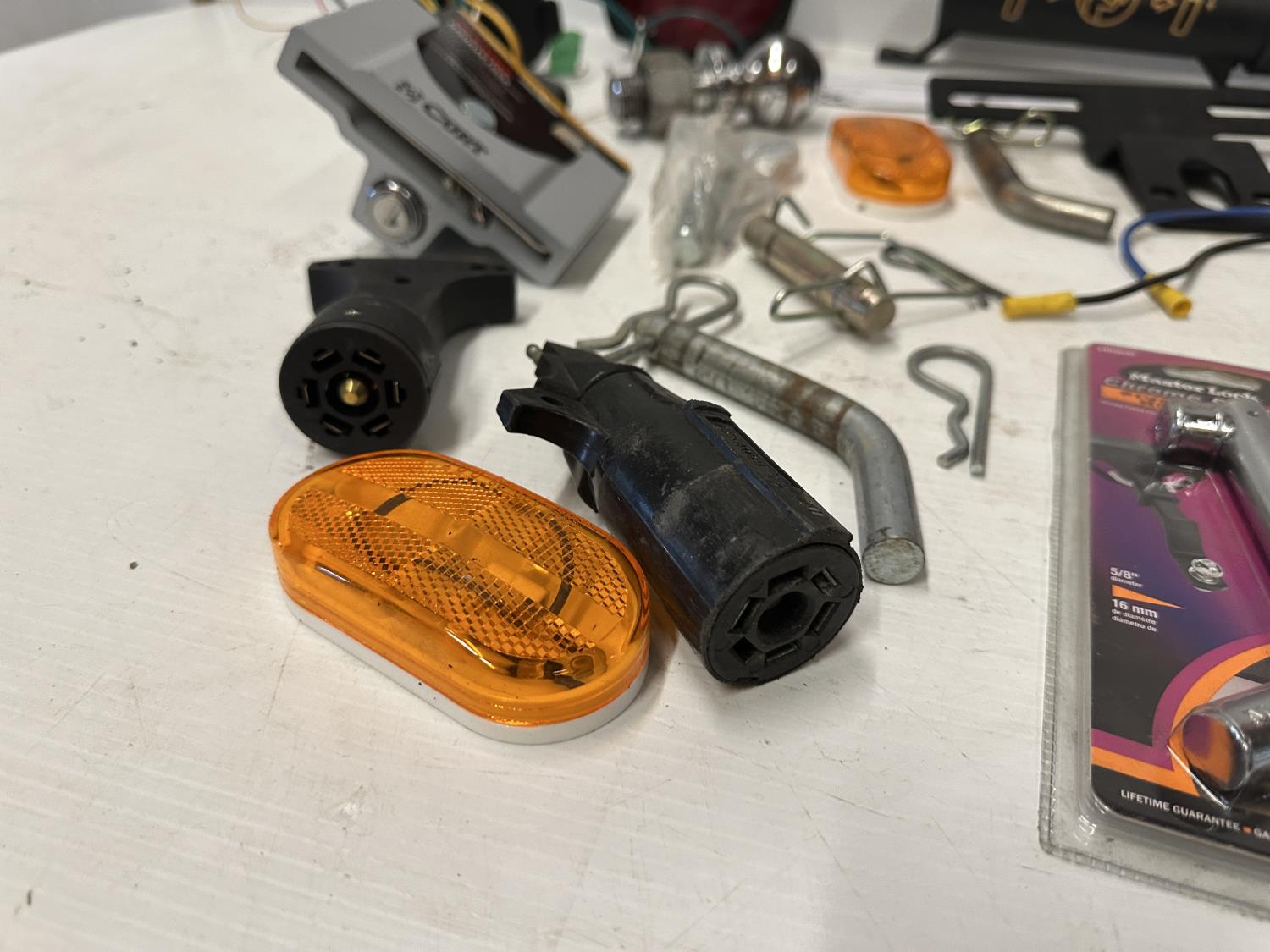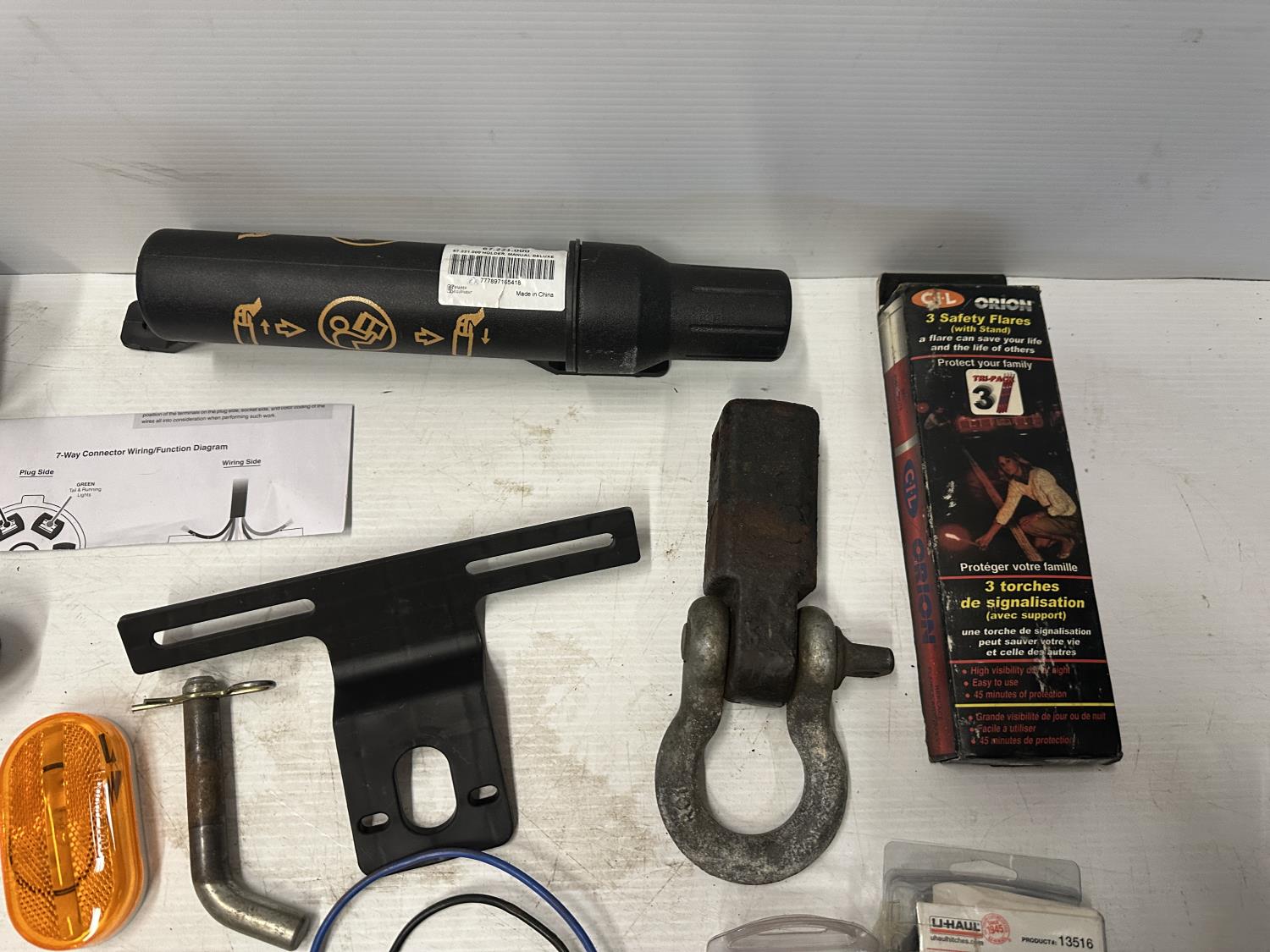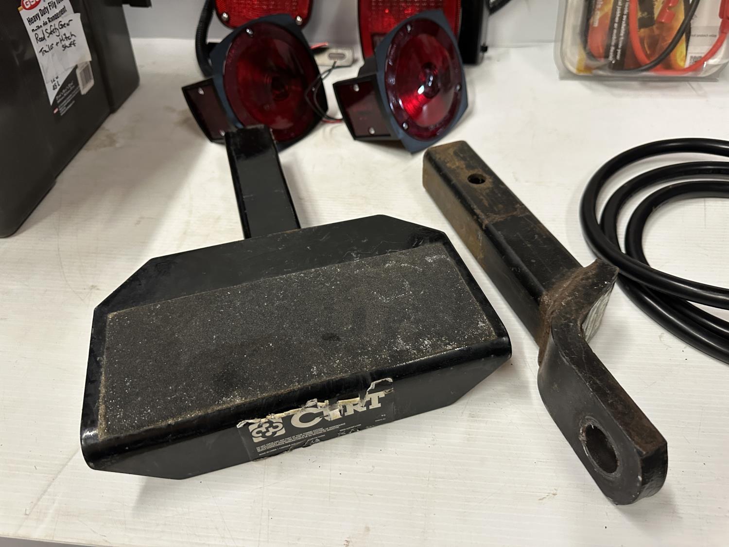 lights, hitch step, drop hitches, chocks, coupler lock, brake control adapter, hitch pins, light testers, trailer plugs