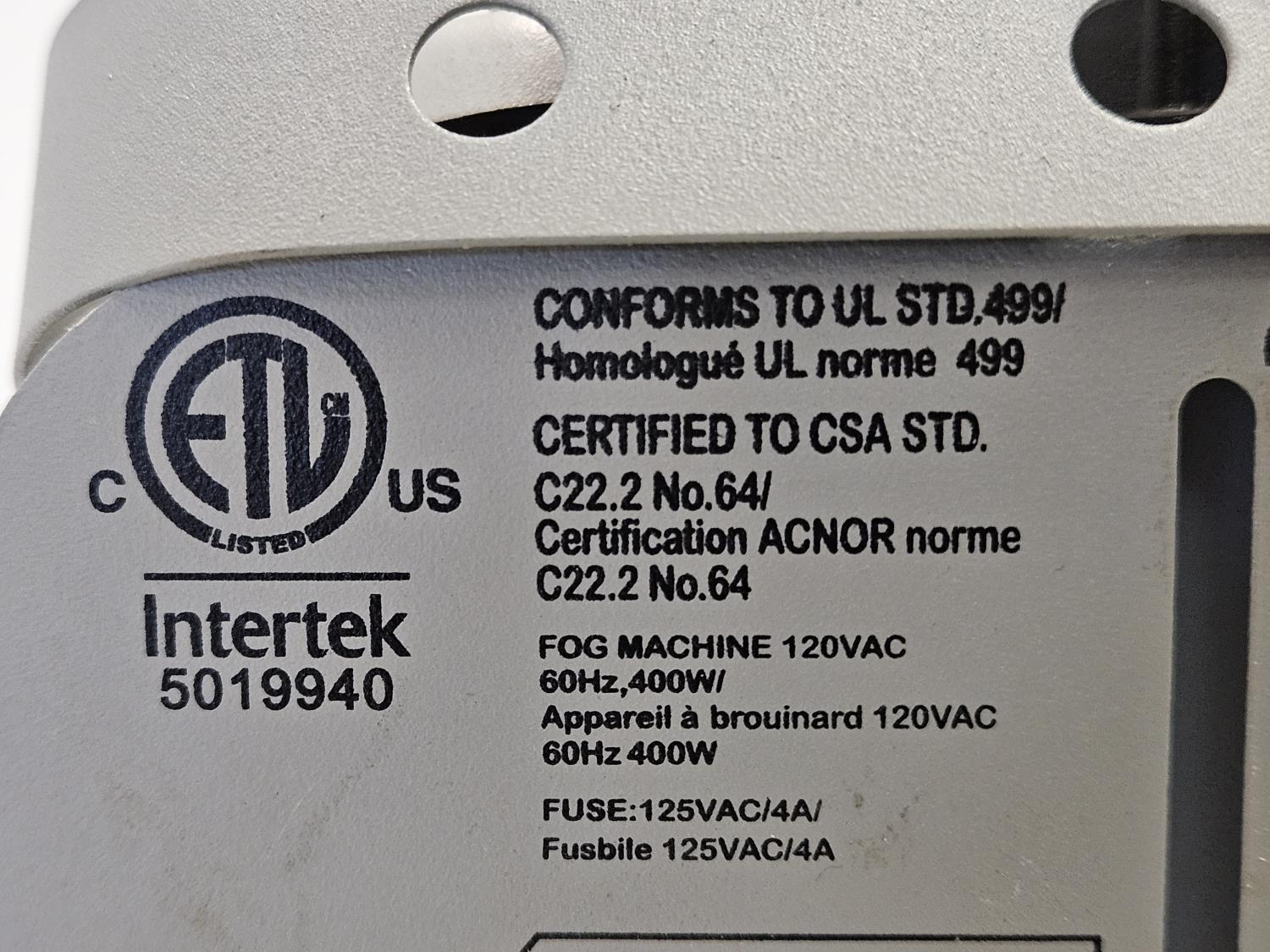 includes (1) fog machine, (1) Simoniz JLS1180A 7 inch 120V right angle polisher & sander, (1) Certified 6 inch car buffer, hose clamp release tool,