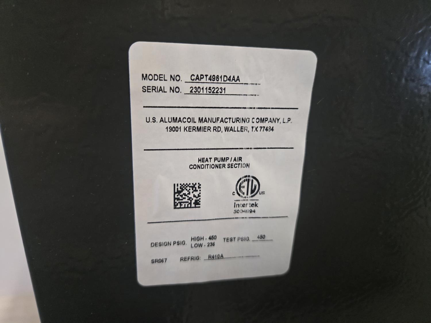 (1) Alumacoil Evaporator Coil (Unused)