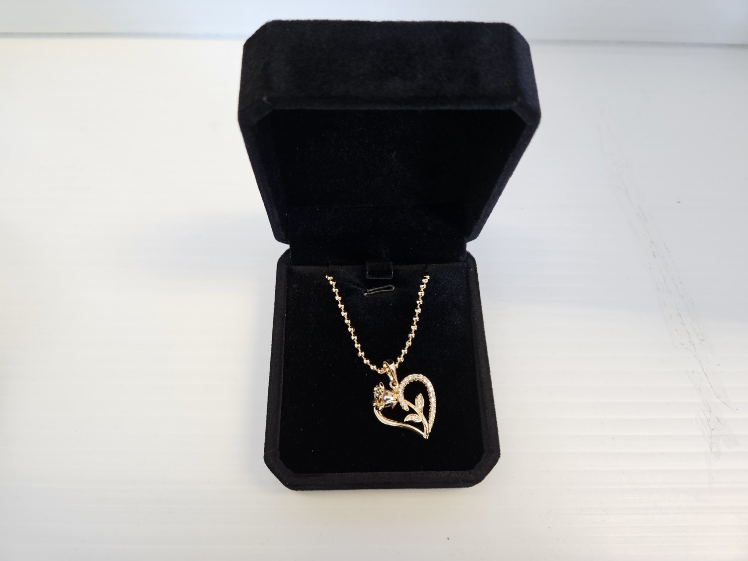7059 18K Gold Plated 28 mm Simulated Diamond Rose Heart Necklace