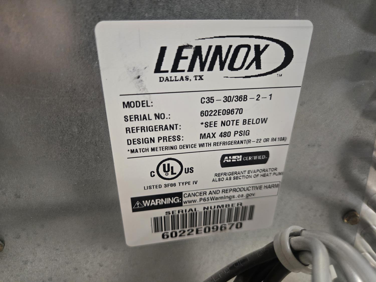(1) Lennox C35-30/36B-2-1, (1) Nortek C84DAMX24U-B