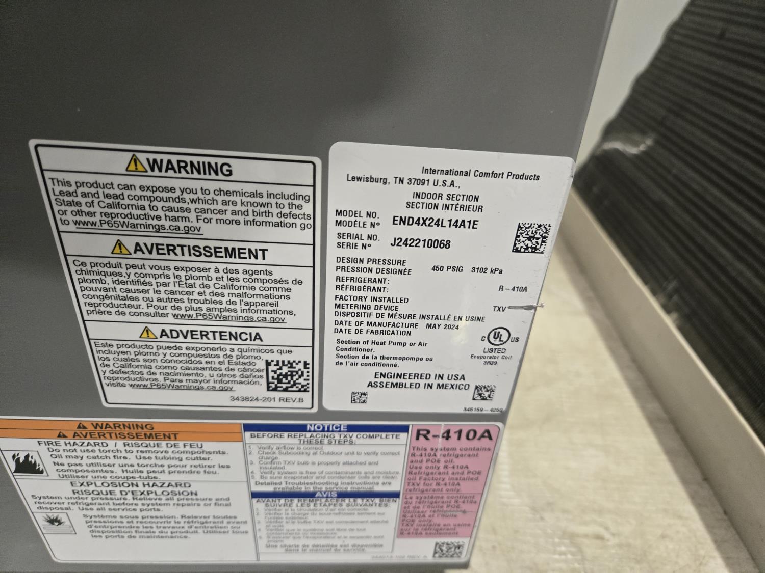 (1) ADP model HE33936A170A0004AP, (1) International Comfort model END4X24L14A1E