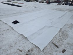 with ball valve with retention plate, bag measures 12 ft wide X 22 ft 8 inch long
