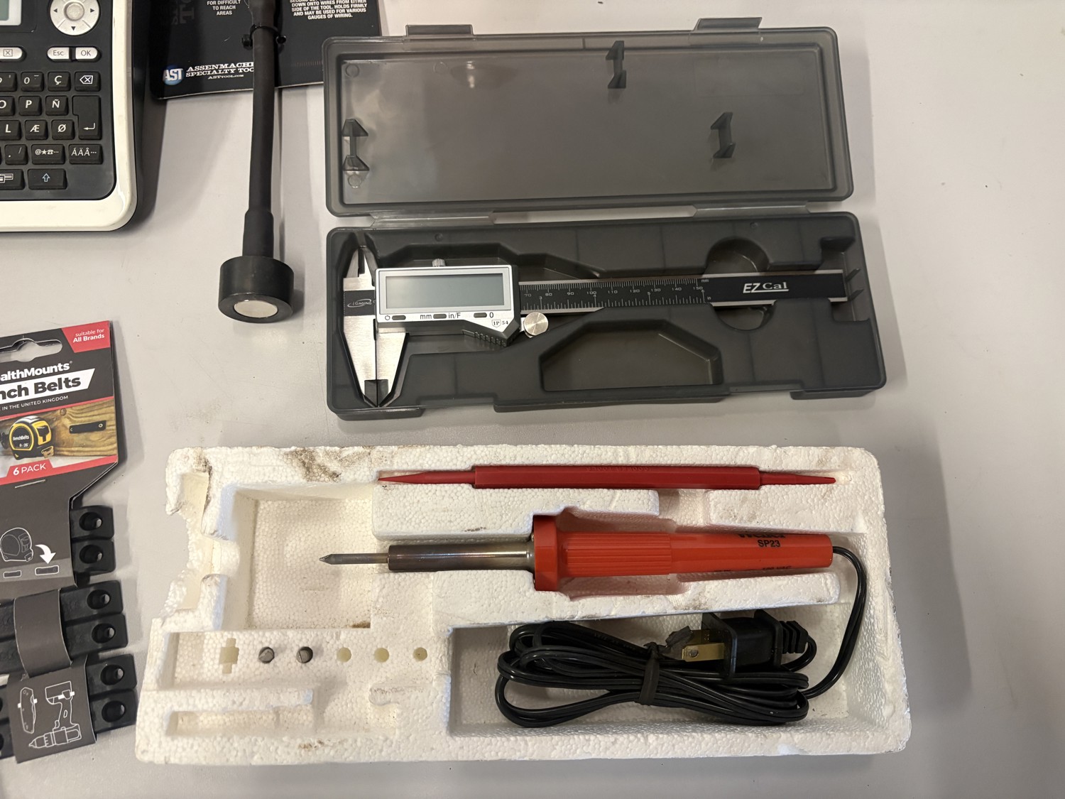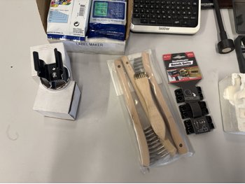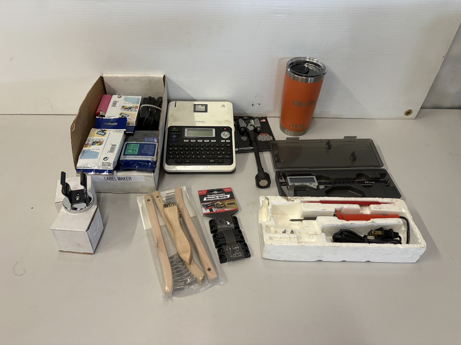 Lots of spare tape, yeti mug, wire clamp tool