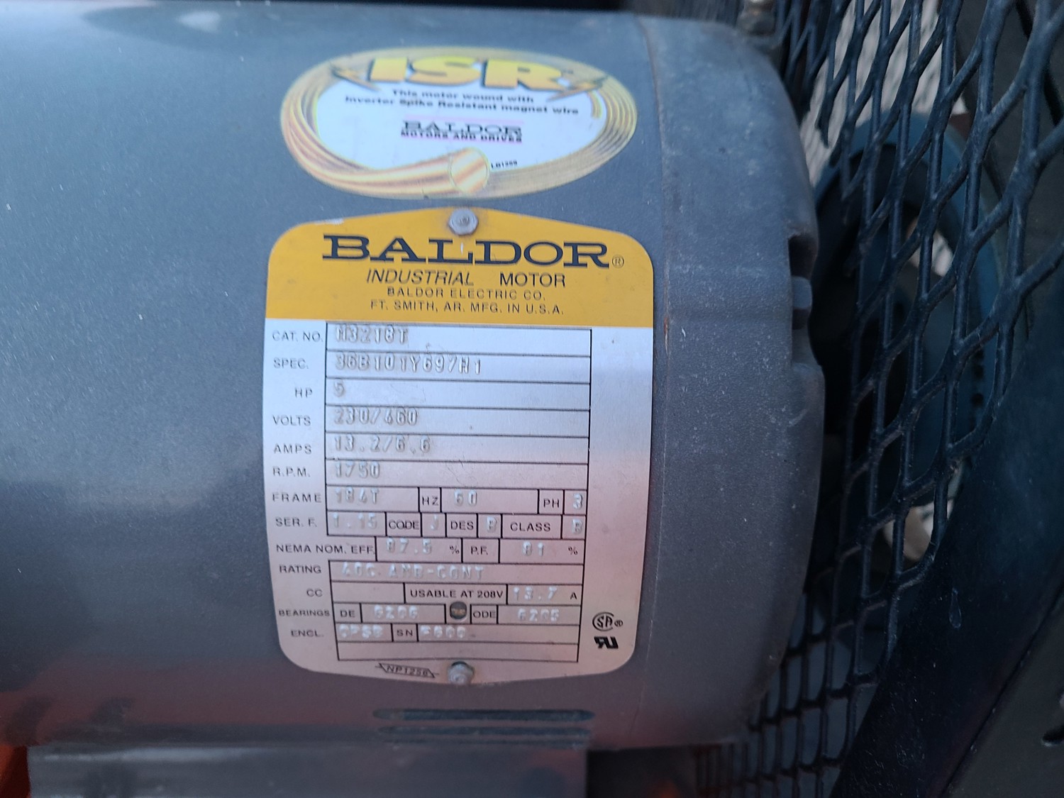 5 HP Baldor electric motor, 3PH, 230/460 volts, 13.2/6.6 amps