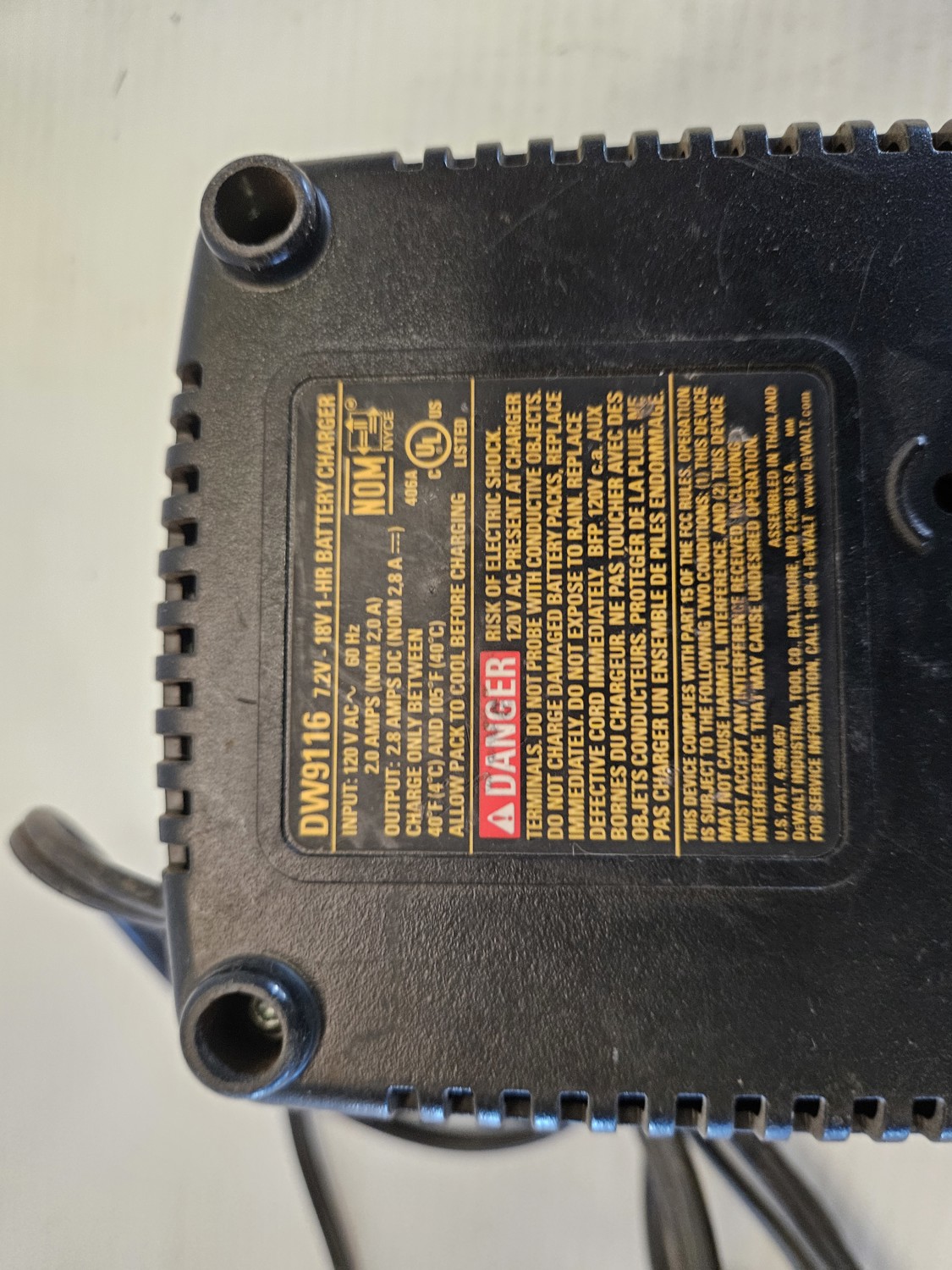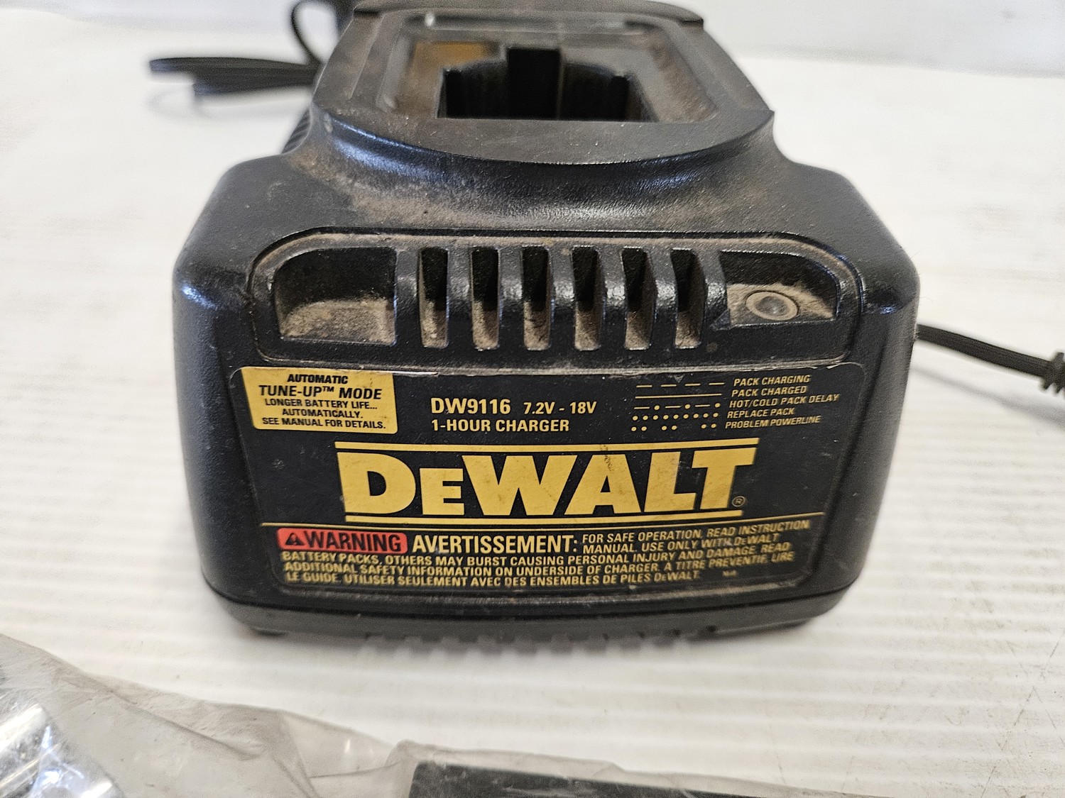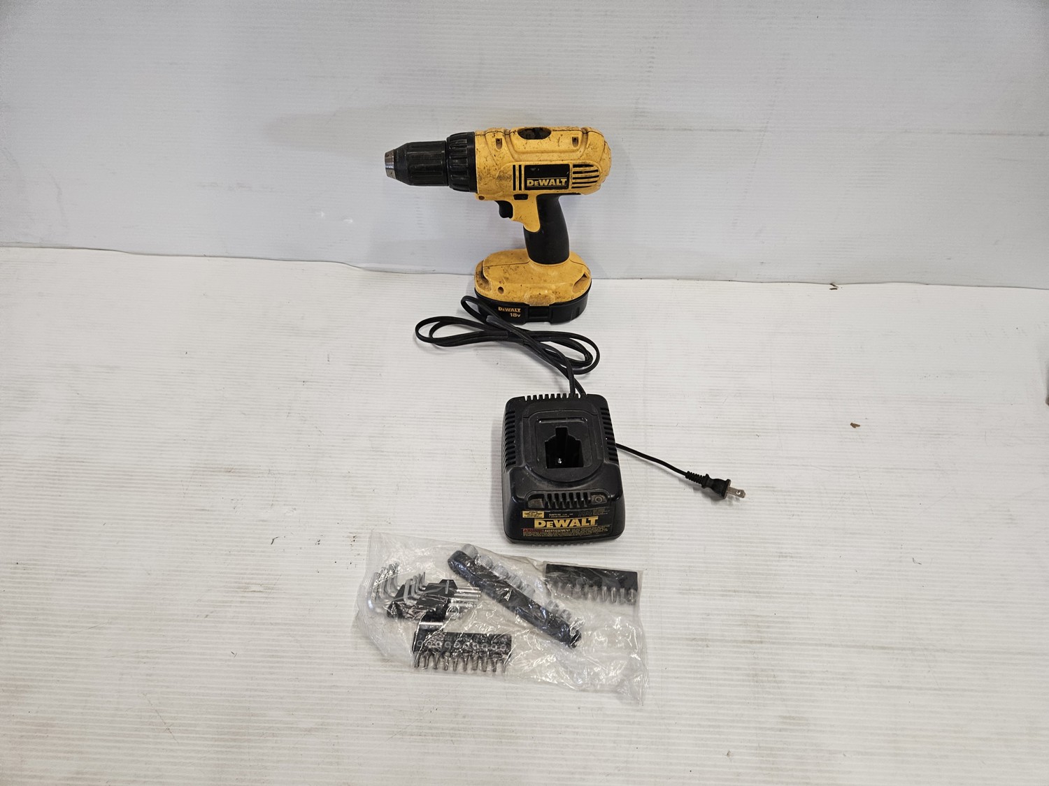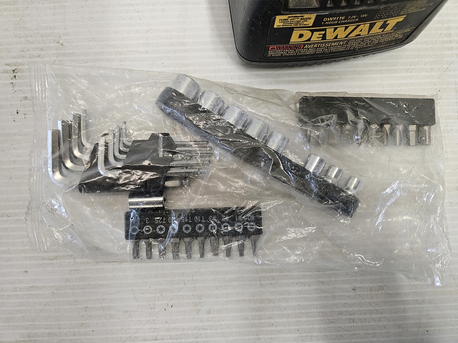 (1) Dewalt 18v battery, (1) Dewalt DW9116 18v charger, allen keys, drill bits and sockets