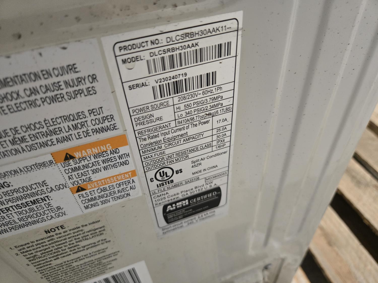 DLCSRBH30AAK A/C Unit (Unused)
