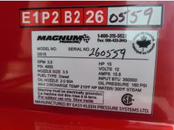 3.5 GPM at 4000 PSI, 15 HP, gasoline engine, electric start, 12 volt burner, oil/diesel fired burned/thermostat, schedule 80 coil with stainless steel housing, fully welded, powder coated frame, 10 gallon poly fuel tank, 30 ft hose and wand