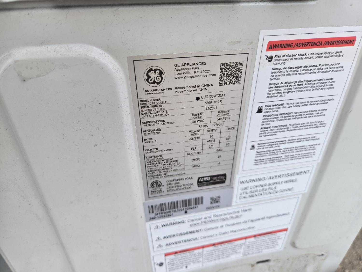 General Electric UUC136WCA1 A/C Unit