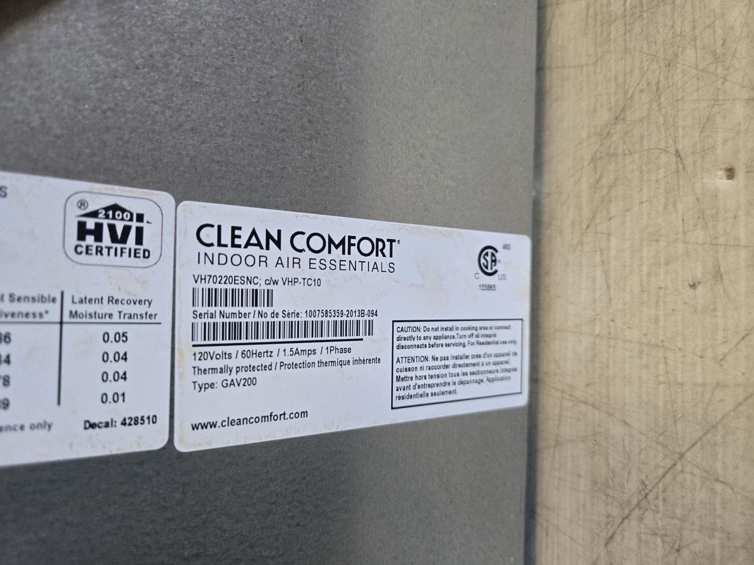 Clean Comfort VH0220ESNC Heat Exchanger (Unused)