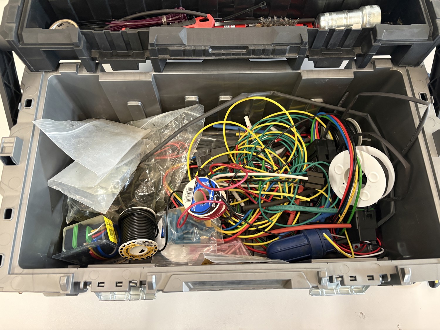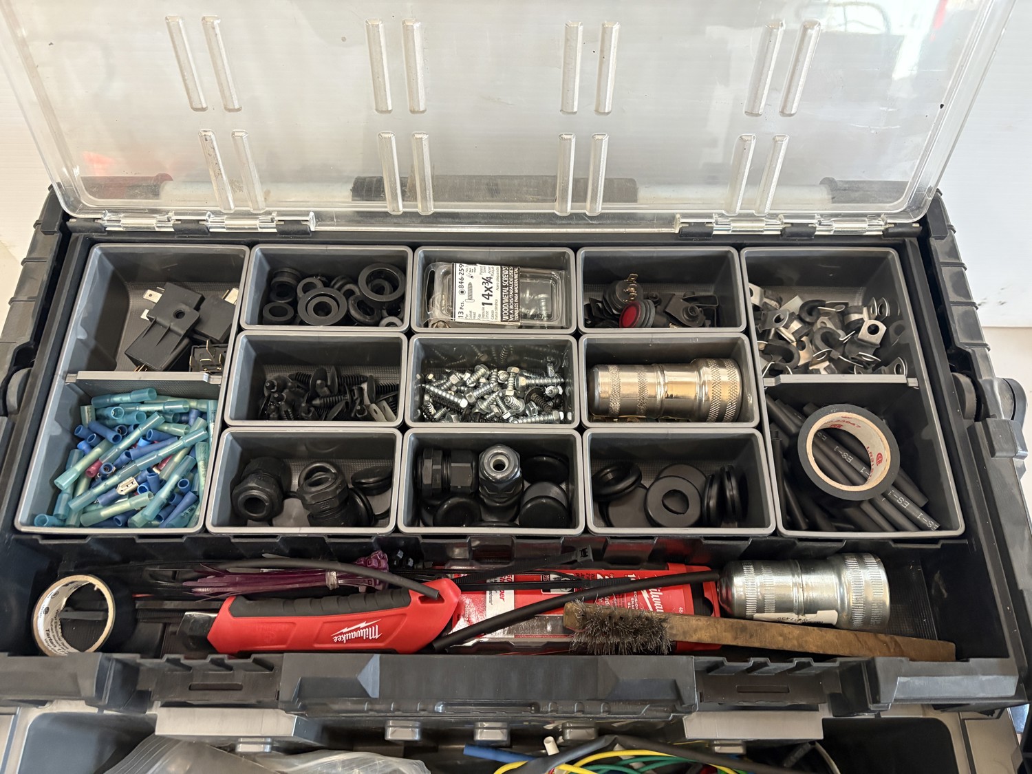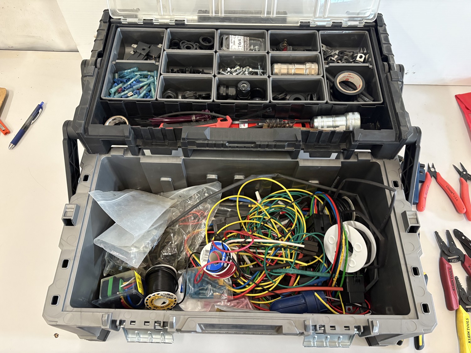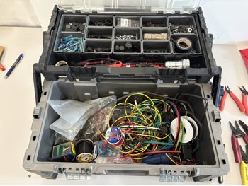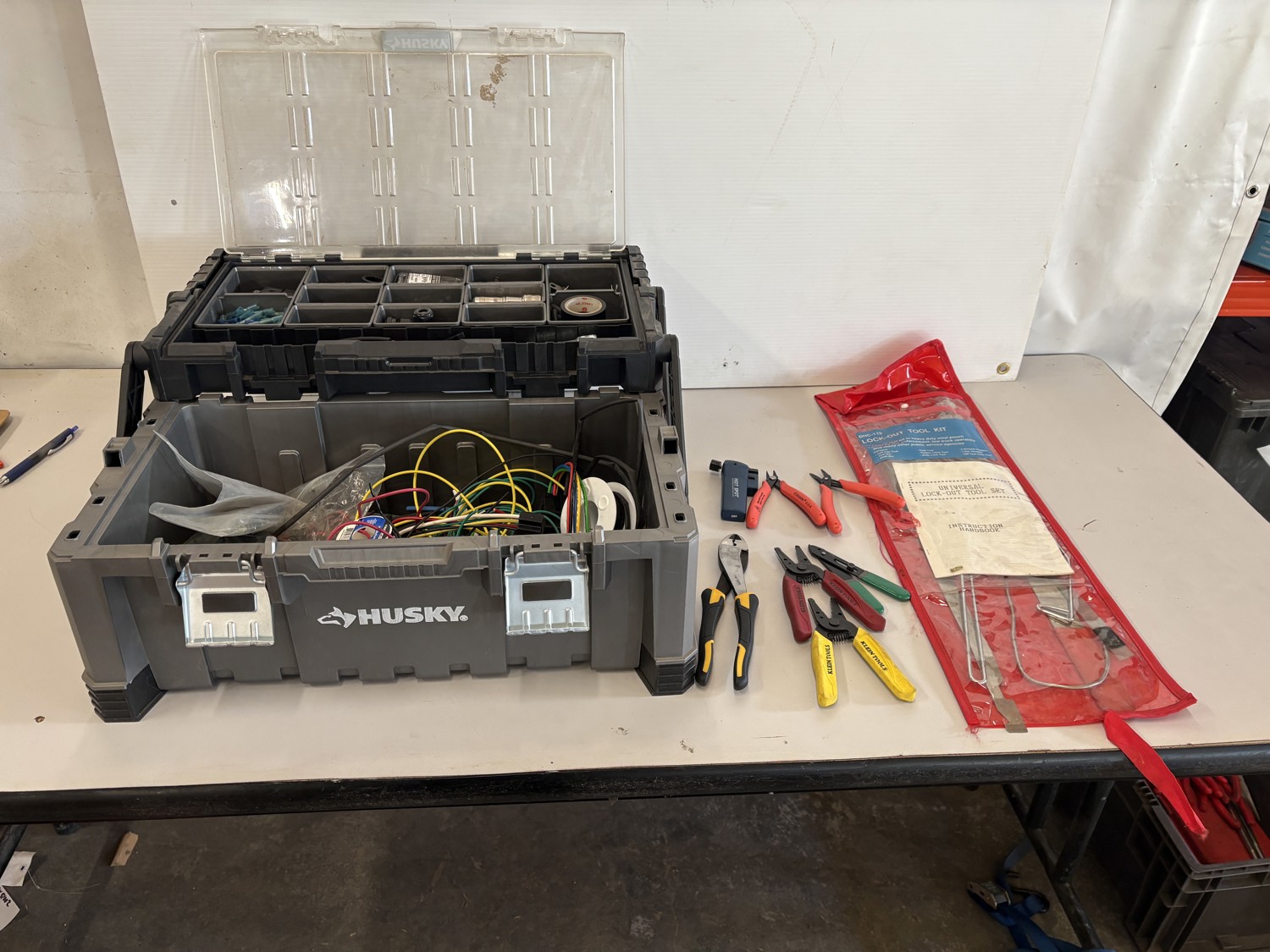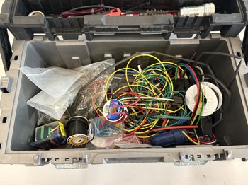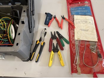 Assorted wire, cutters, wire strippers, fittings, crimps, lock out tool kit