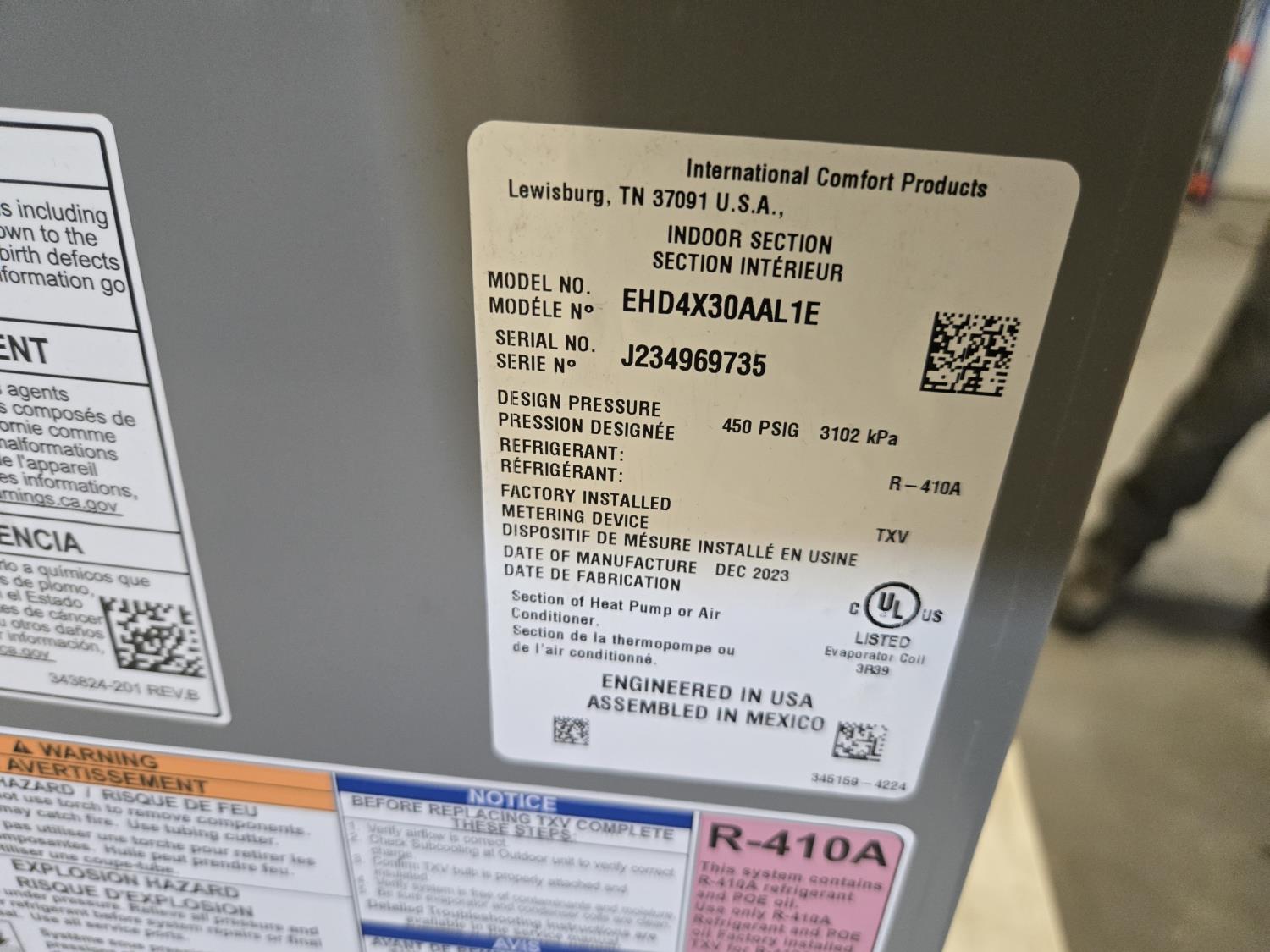 International Comfort EHD4X30AAL13 Evaporator Coil (Unused)