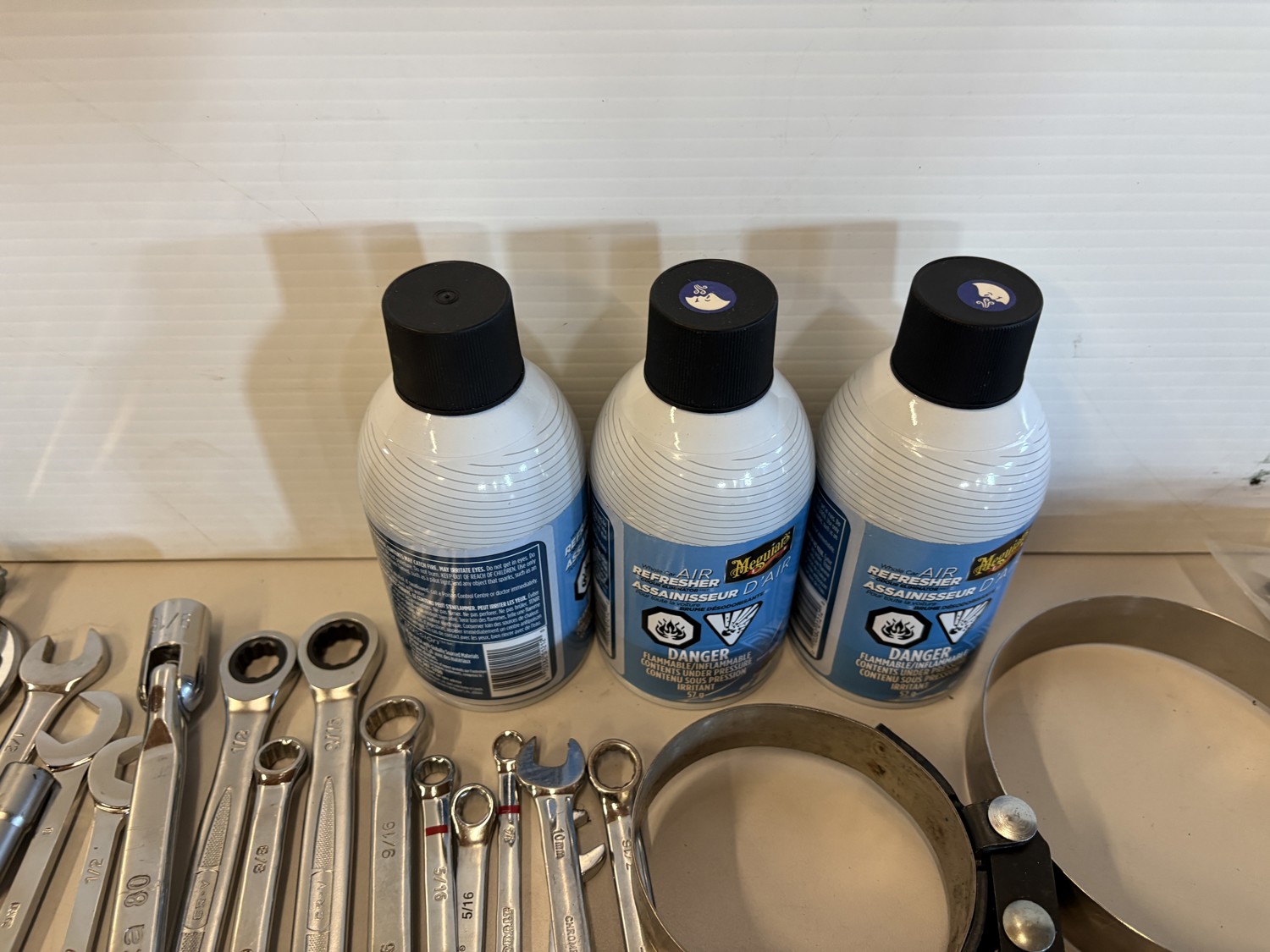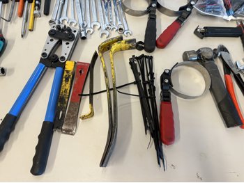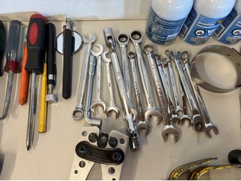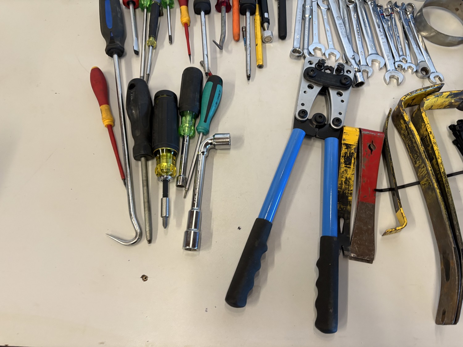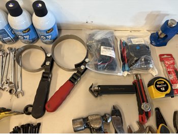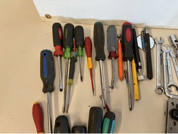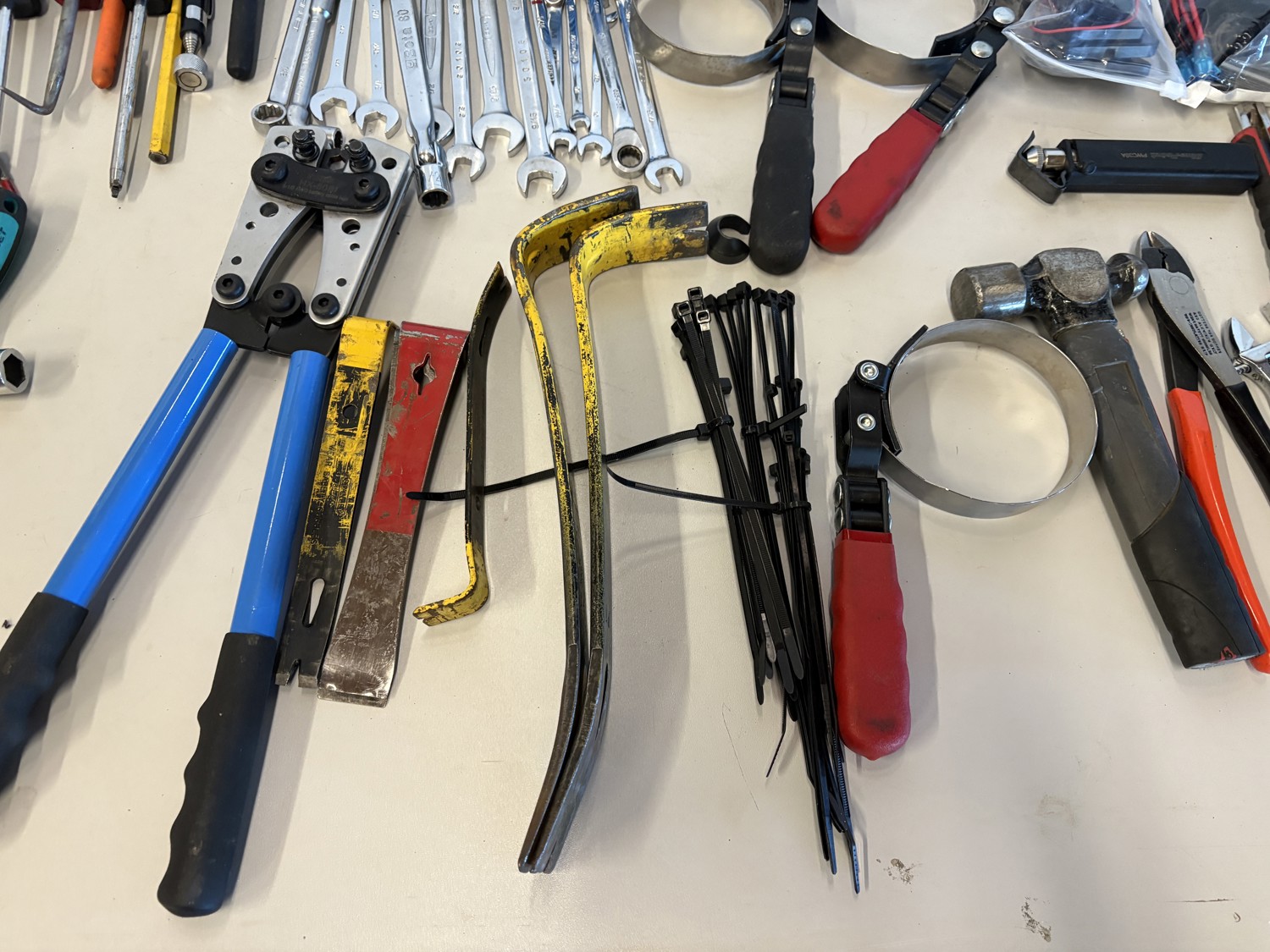 Screwdrivers, plyers, cutters, pry bars, wrenches, oil filter tools, milwaukee volt meter