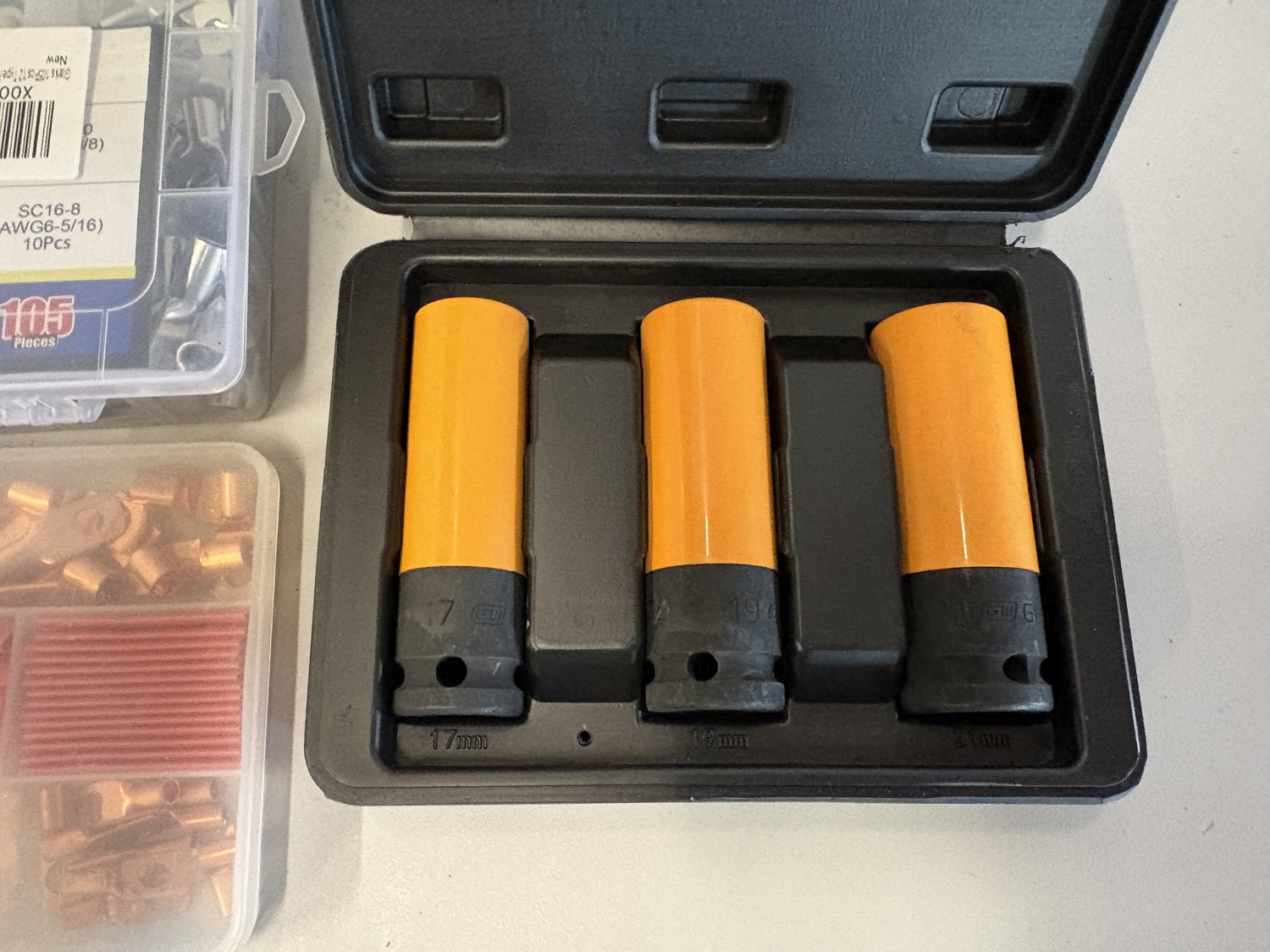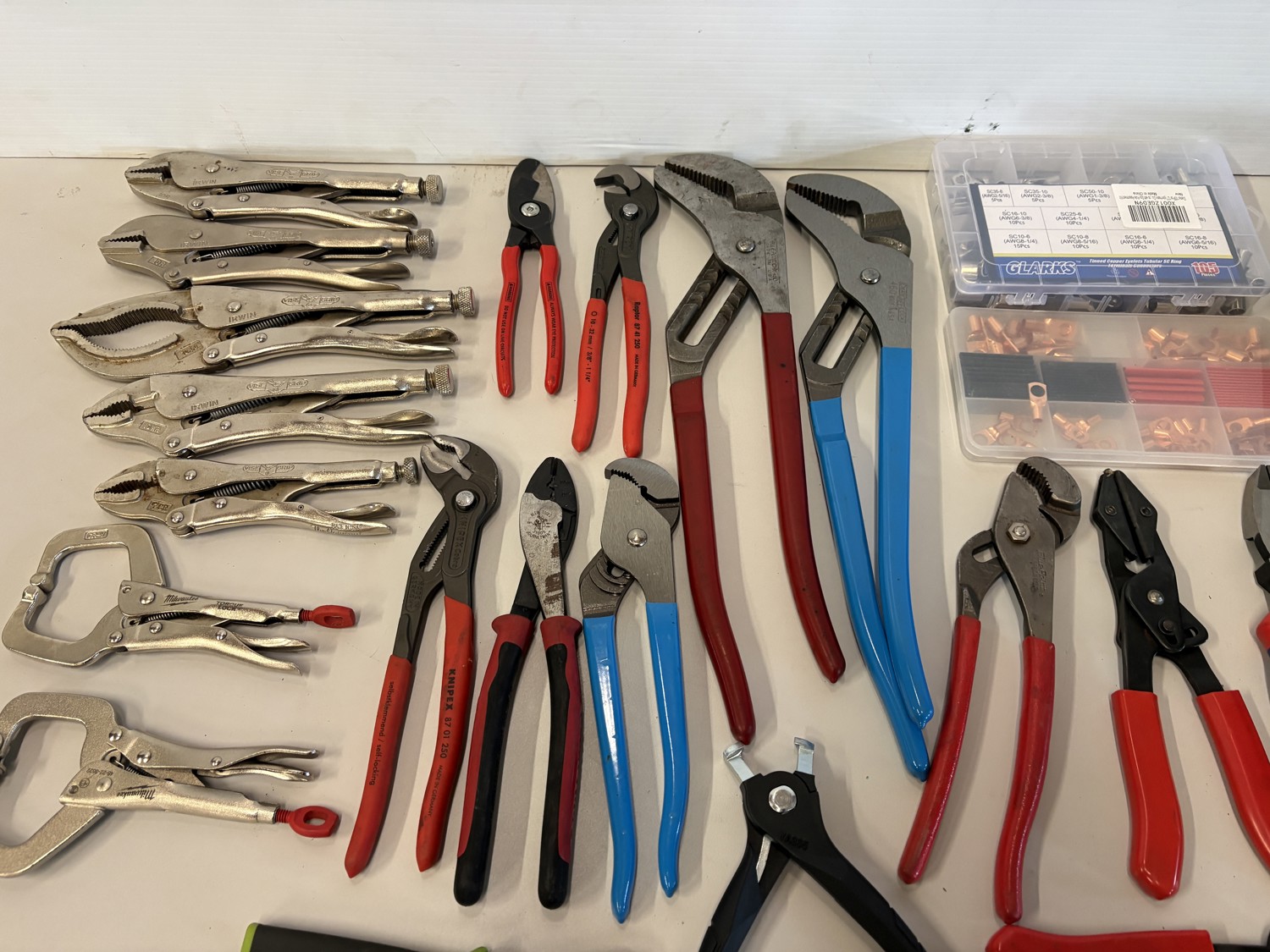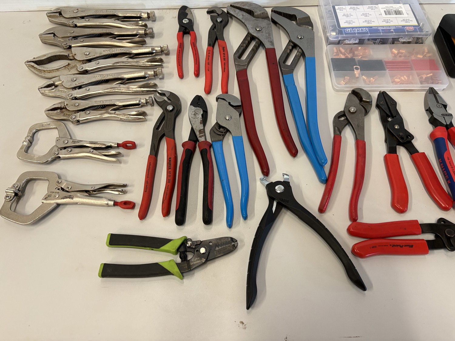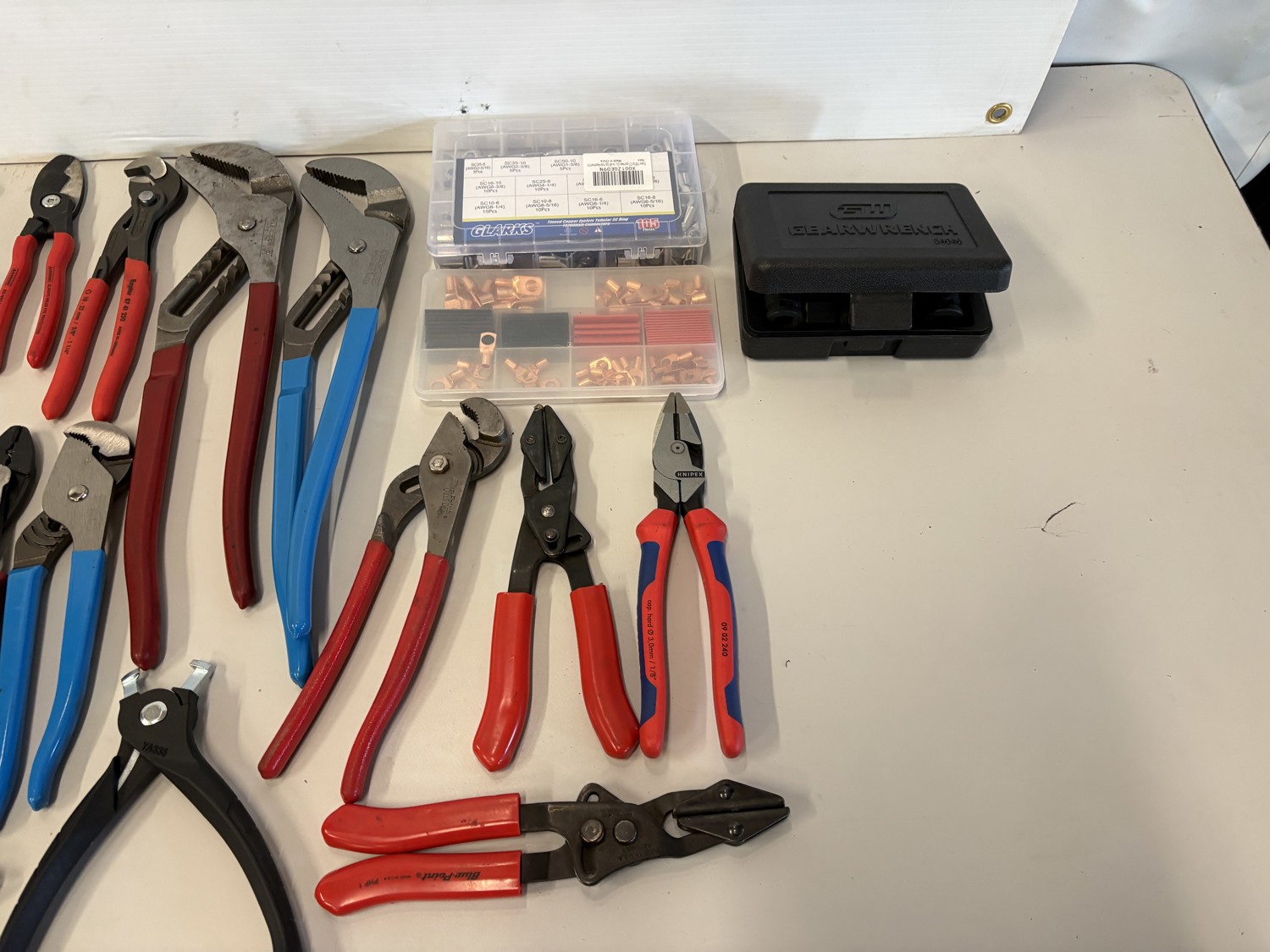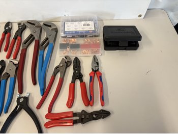 Vice grips, plyers, cutters, crimps, tire sockets, copper eyelets