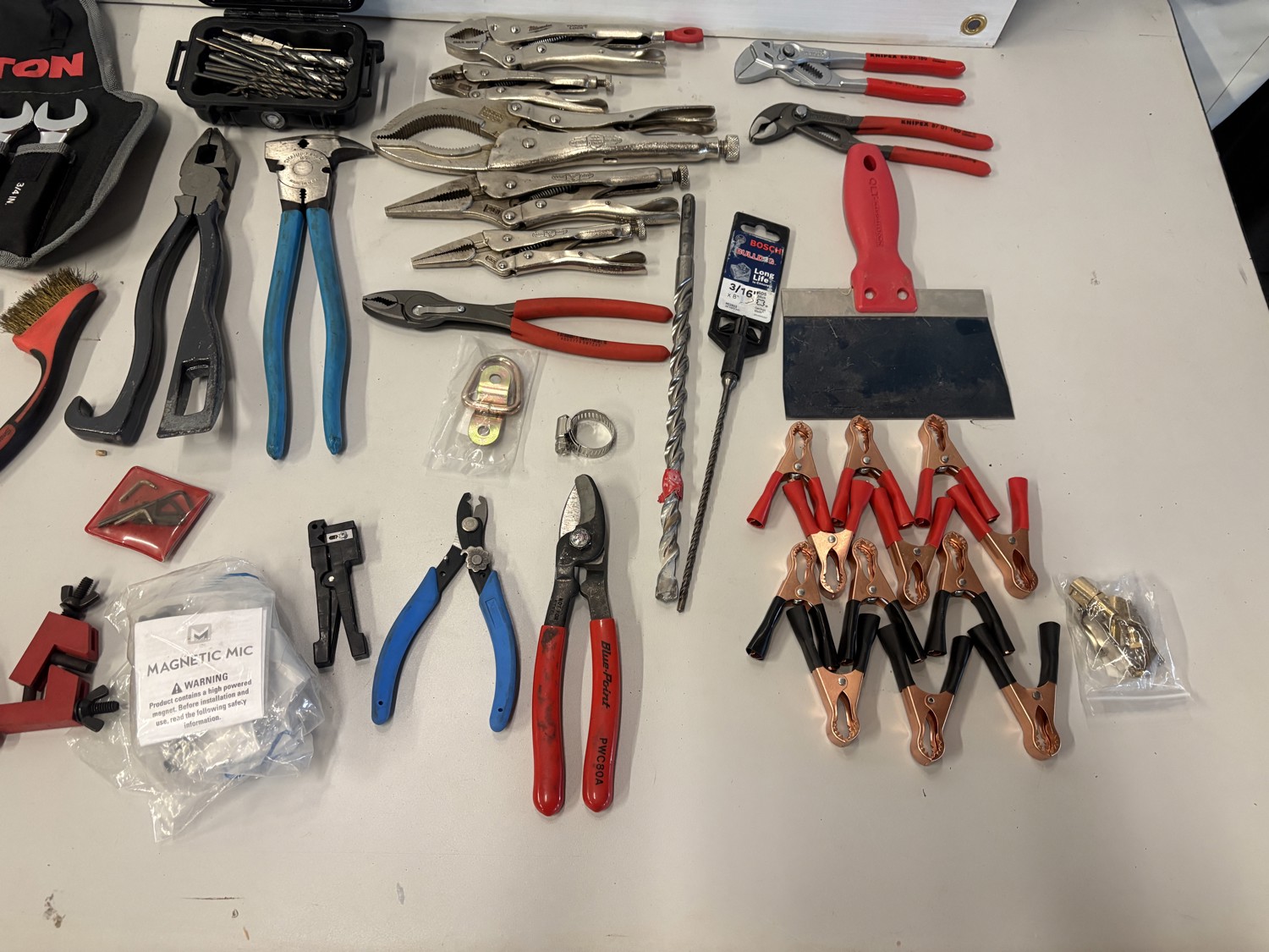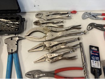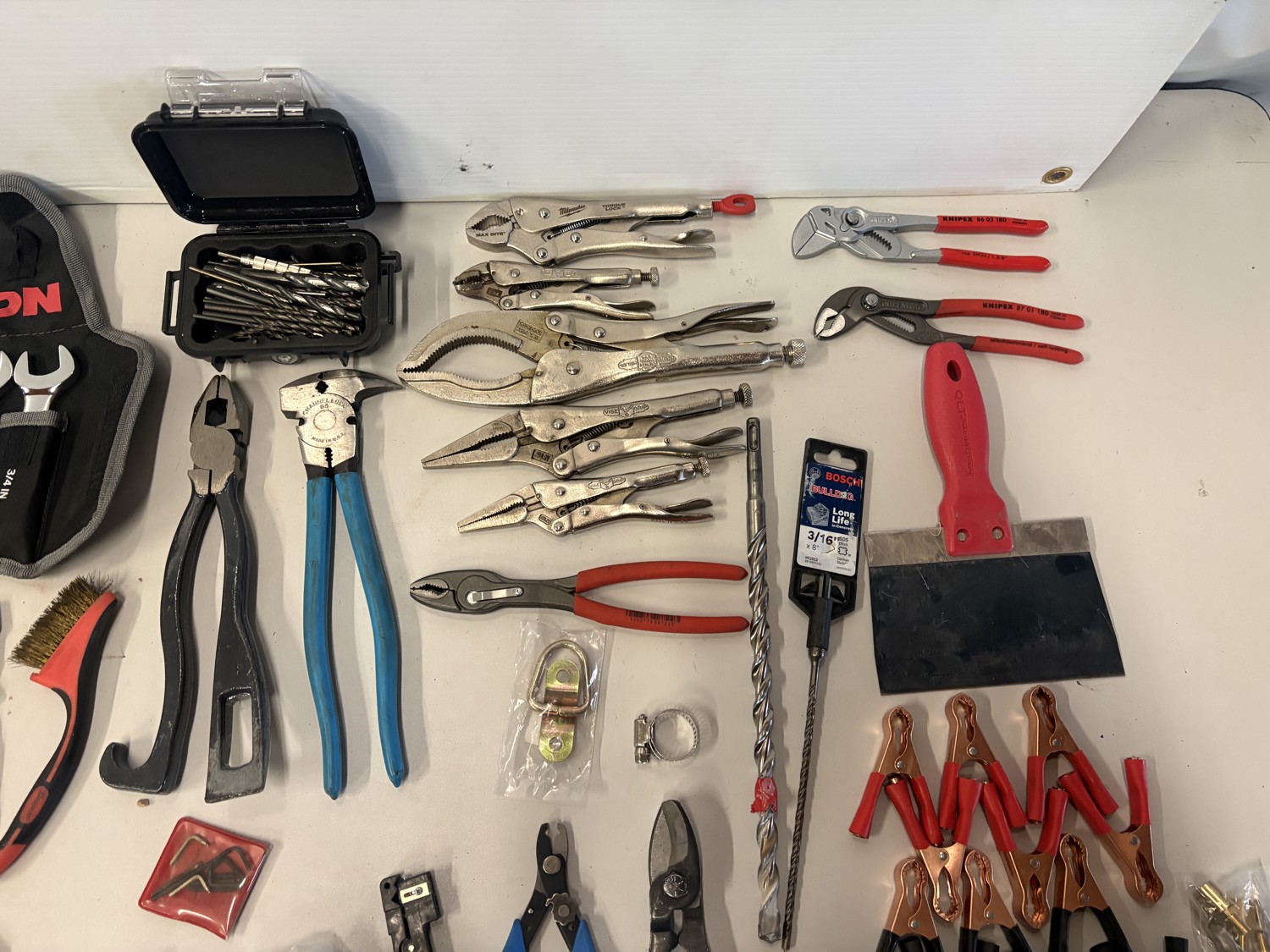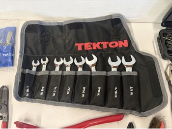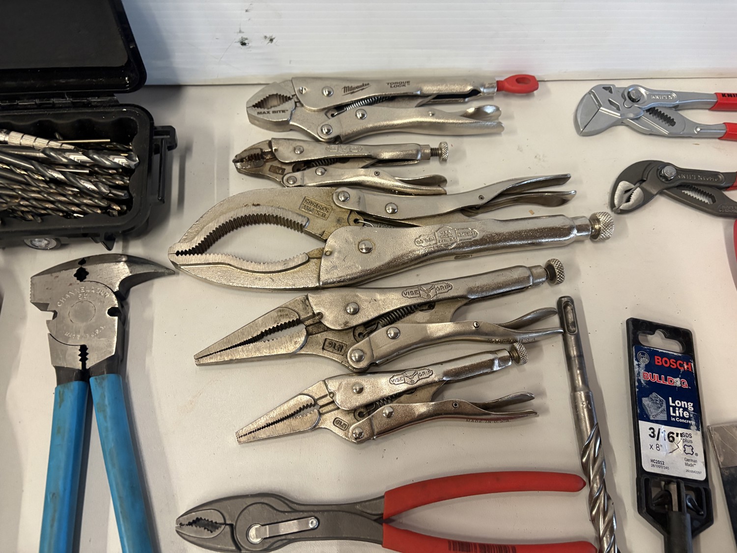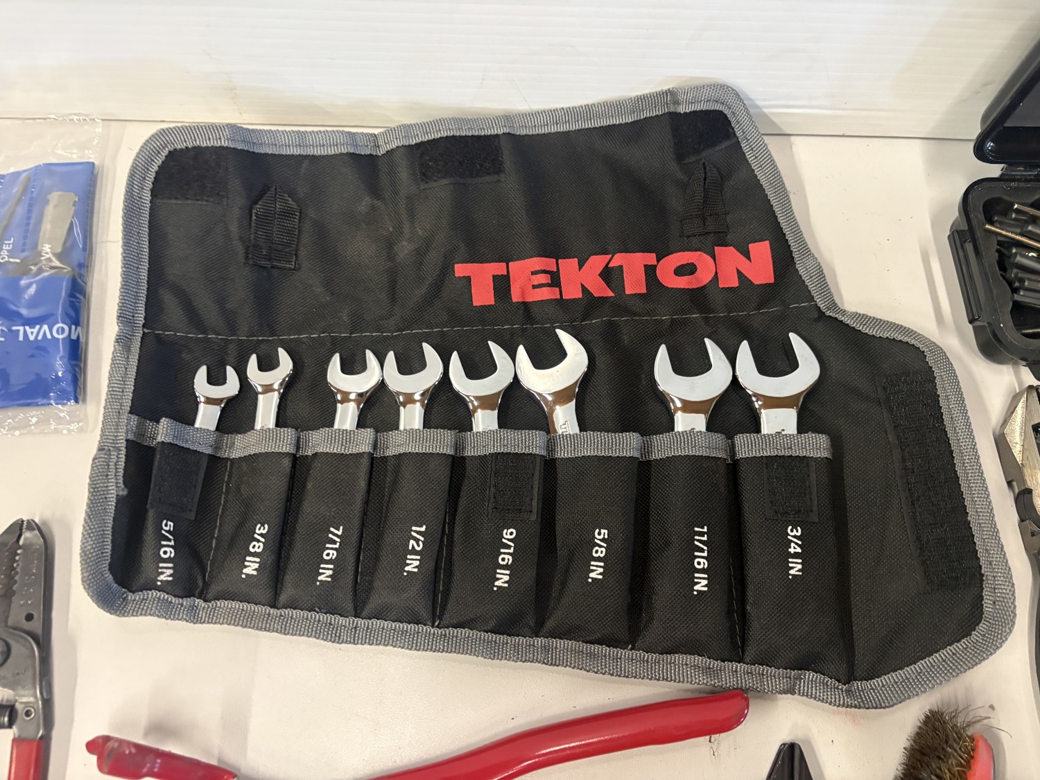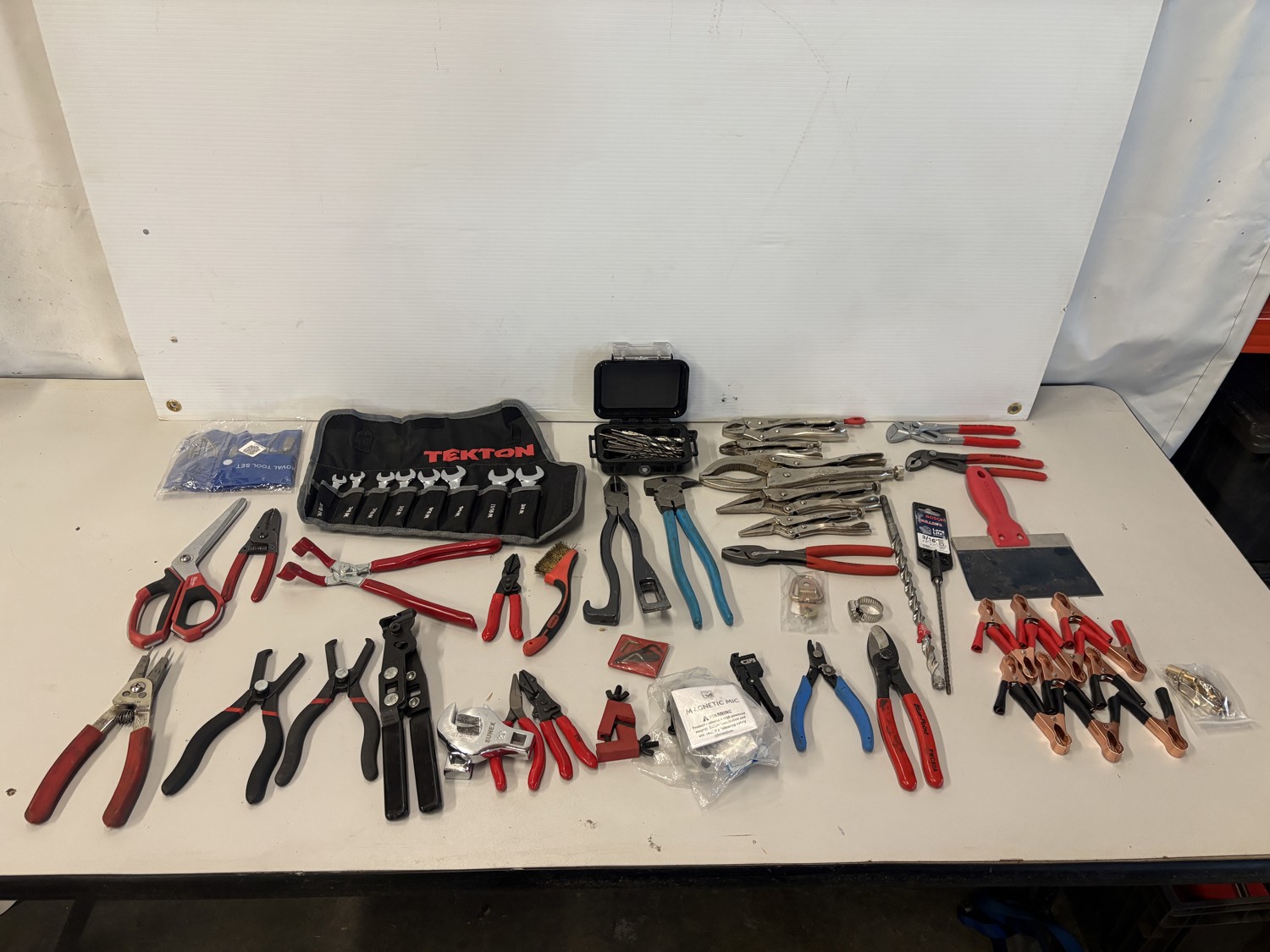 Tekto 8 piece imperial wrenches, cutters, plyers, vice grips, gator clips, drill bits, specialty tools