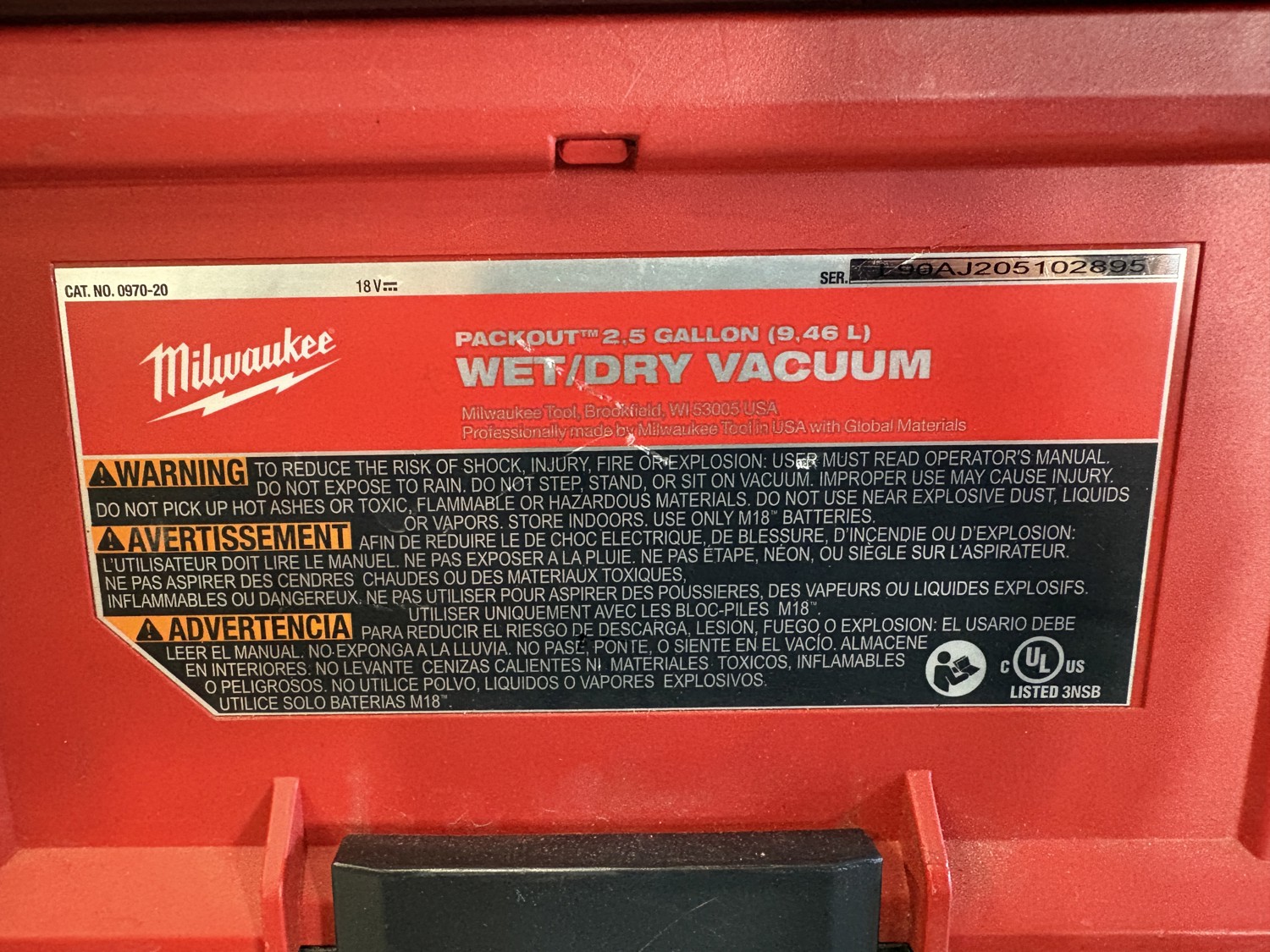 7298 Milwaukee 0970-20 Fuel Packout 2.5 Gallon Wet/Dry Vacuum