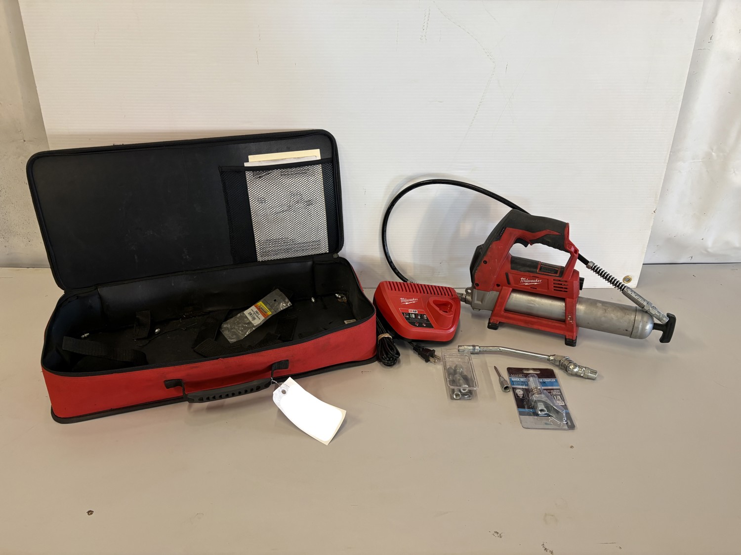 (1) milwaukee M12 battery, milwaukee M12 charger, fittings, carrying case
