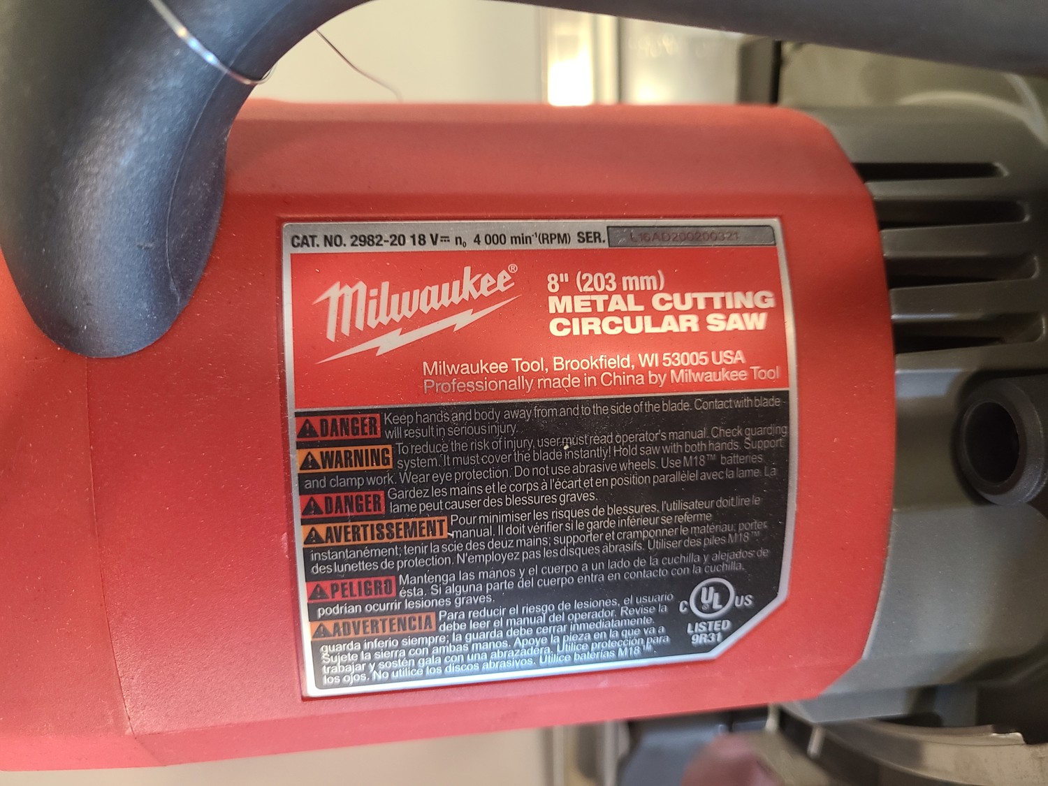 7278 Milwaukee Fuel 2962-20 8 Inch Metal Cutting Circular Saw