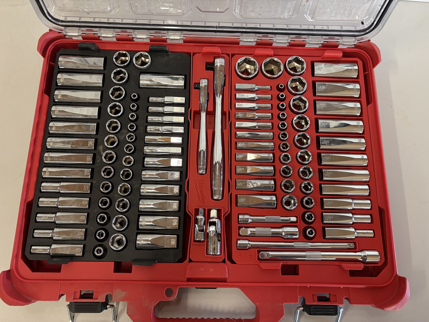 3/8 inch & 1/4 inch metric & imperial ratchets & sockets, milwaukee packout case