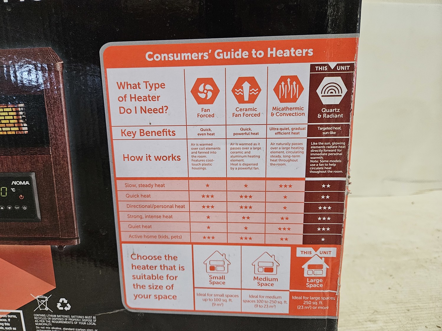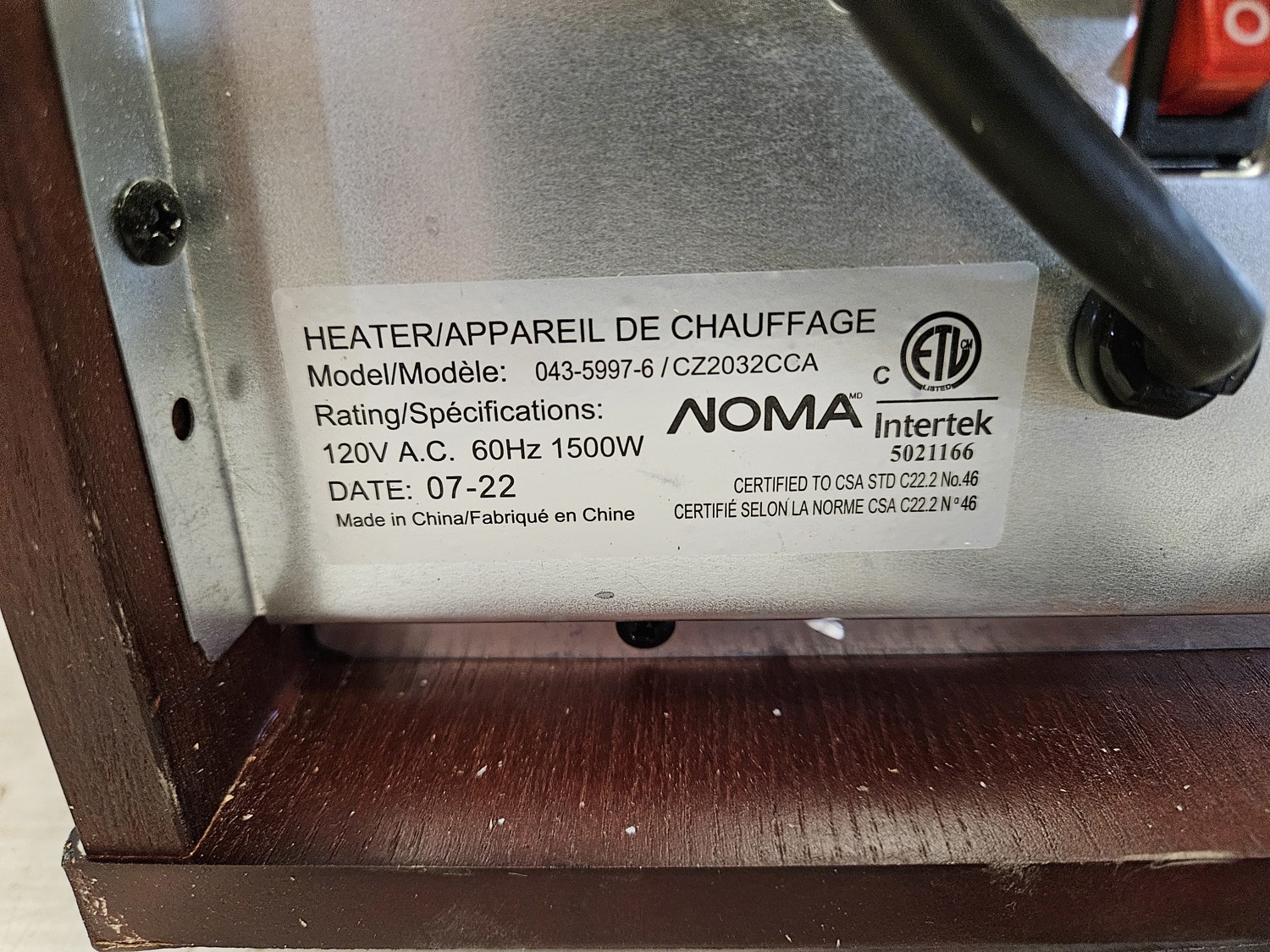 7416 Noma 1500 Watt Wooden Cabinet Heater w/ For Living Fan