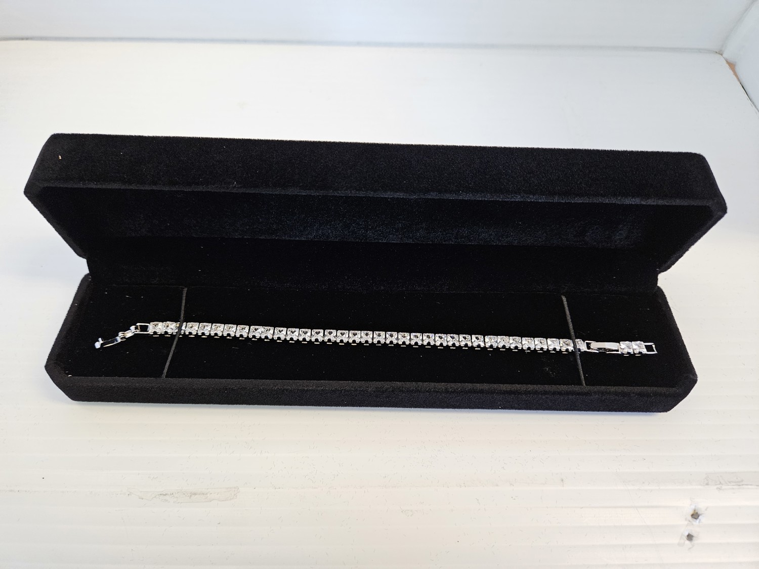 7066 Platinum Plated 4 mm Princess Cut Simulated Diamond Tennis Bracelet